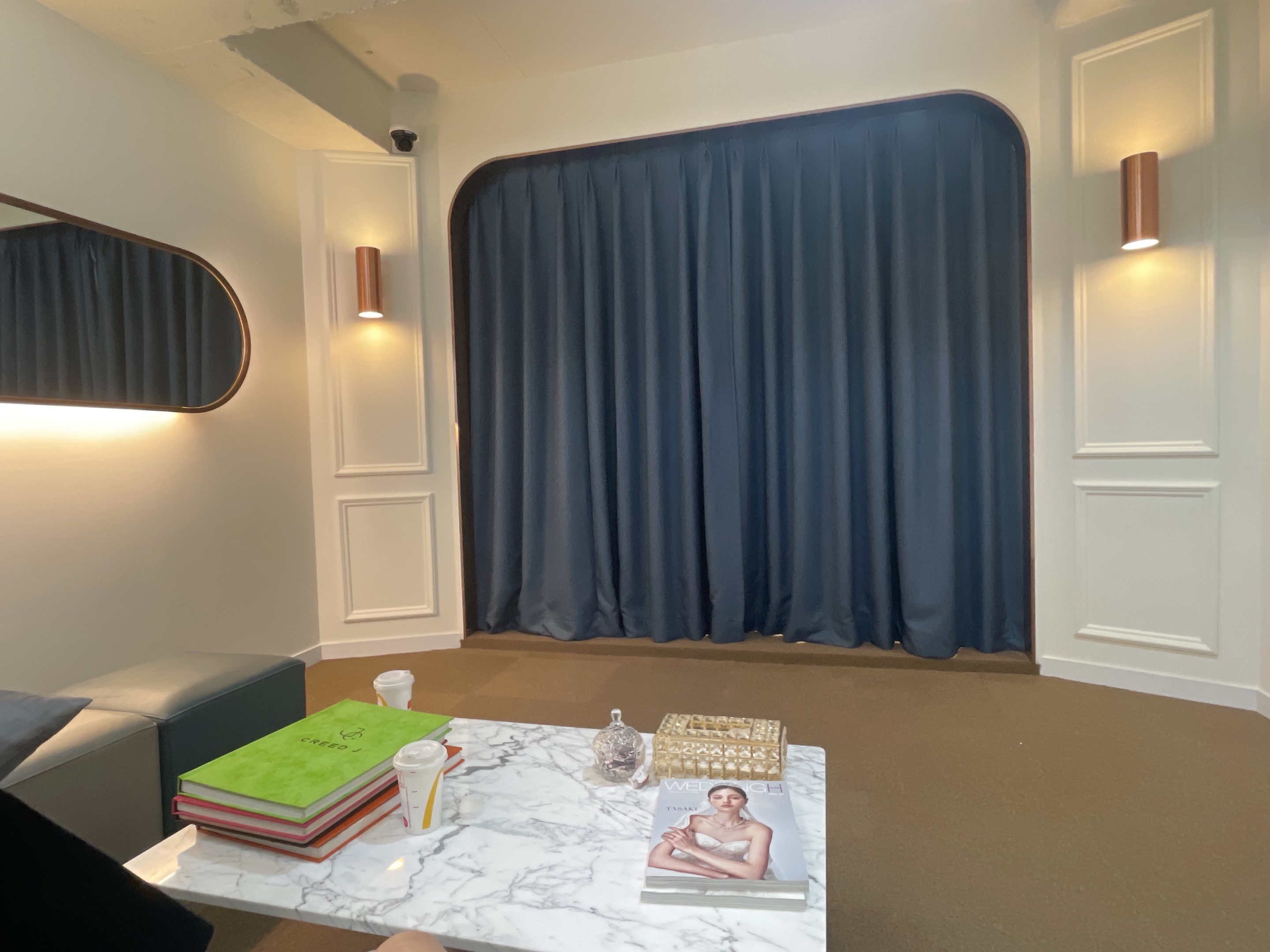 짜잔 여기가 바로 피팅룸입니다. 생각보다 작은 방이었고 디퓨저냄새가 났습니다. 밝은 인테리어라서 어두운 홀느낌은 어떻게 보나했더니 조명 On / Off 로 분위기를 연출해주셨어요. 근데 슬립이 병아리임. 이건 쫌 별로더라구요. 싼 느낌이랄까요