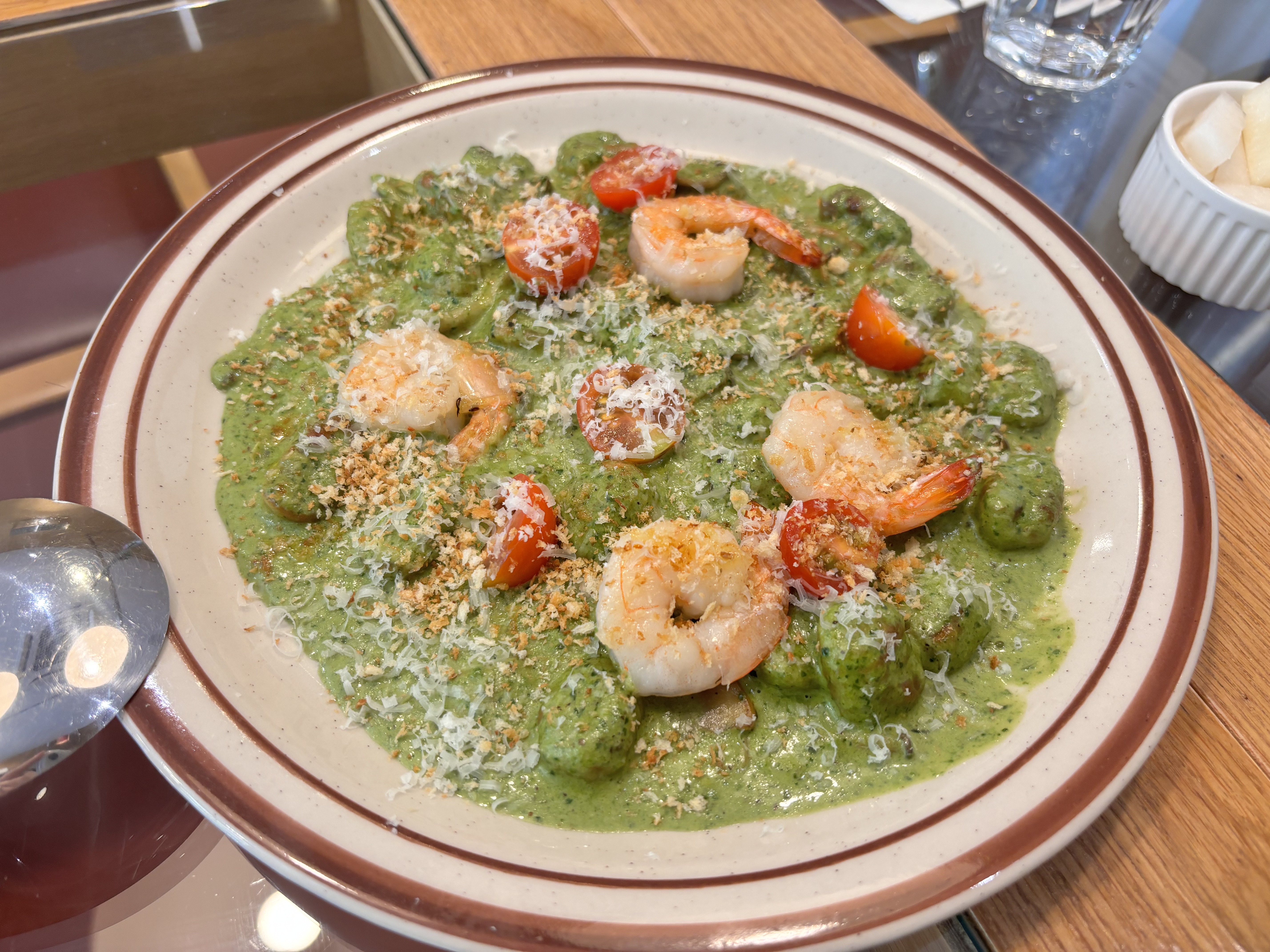 수제뇨끼와 수제페스토라서 걱정했는데 생각보다 맛있어서 놀랐습니다. 소개팅에서 절대 먹으면 안 되는 음식 비주얼이죠? 그래도 맛은 추천입니다.