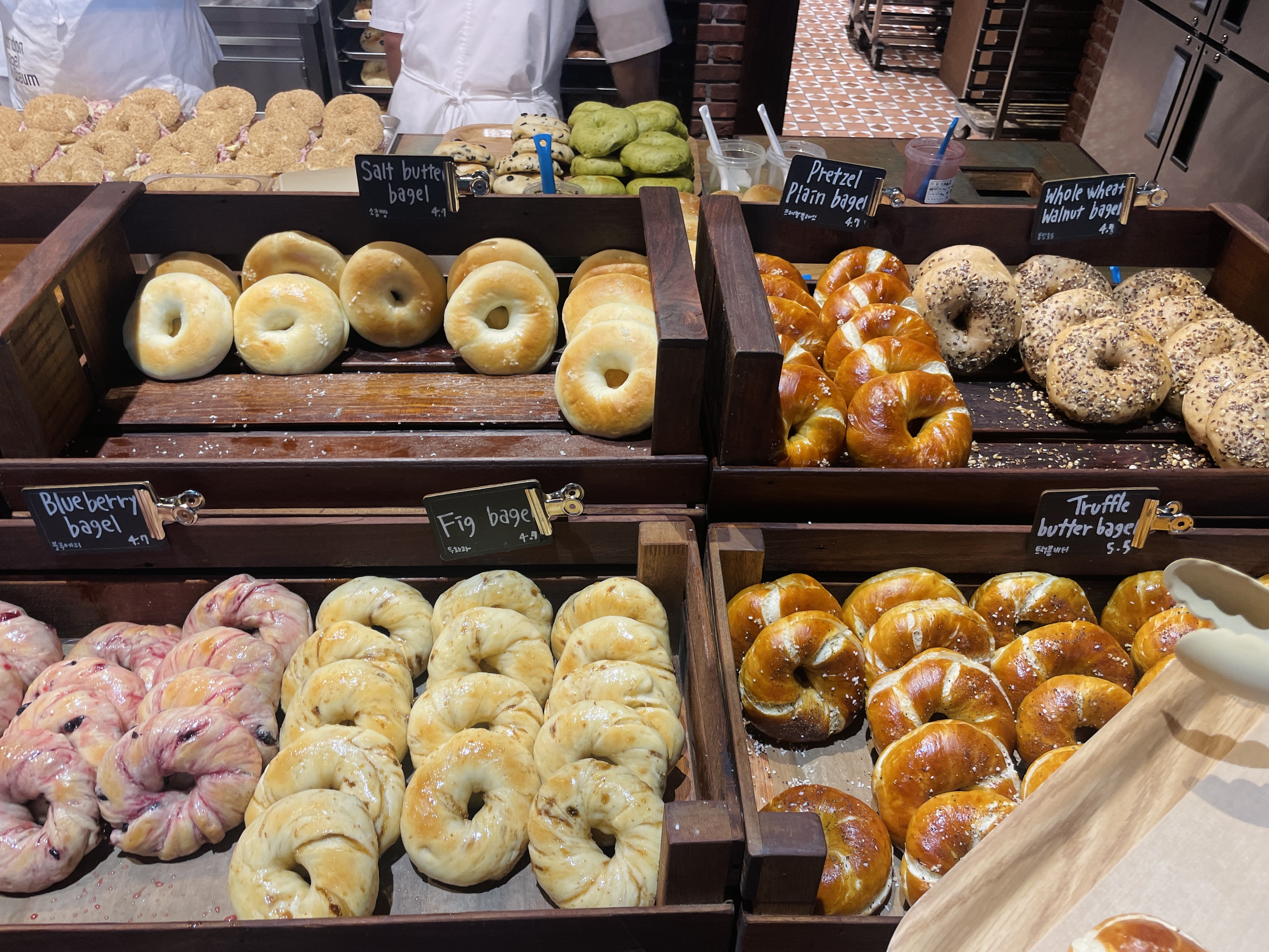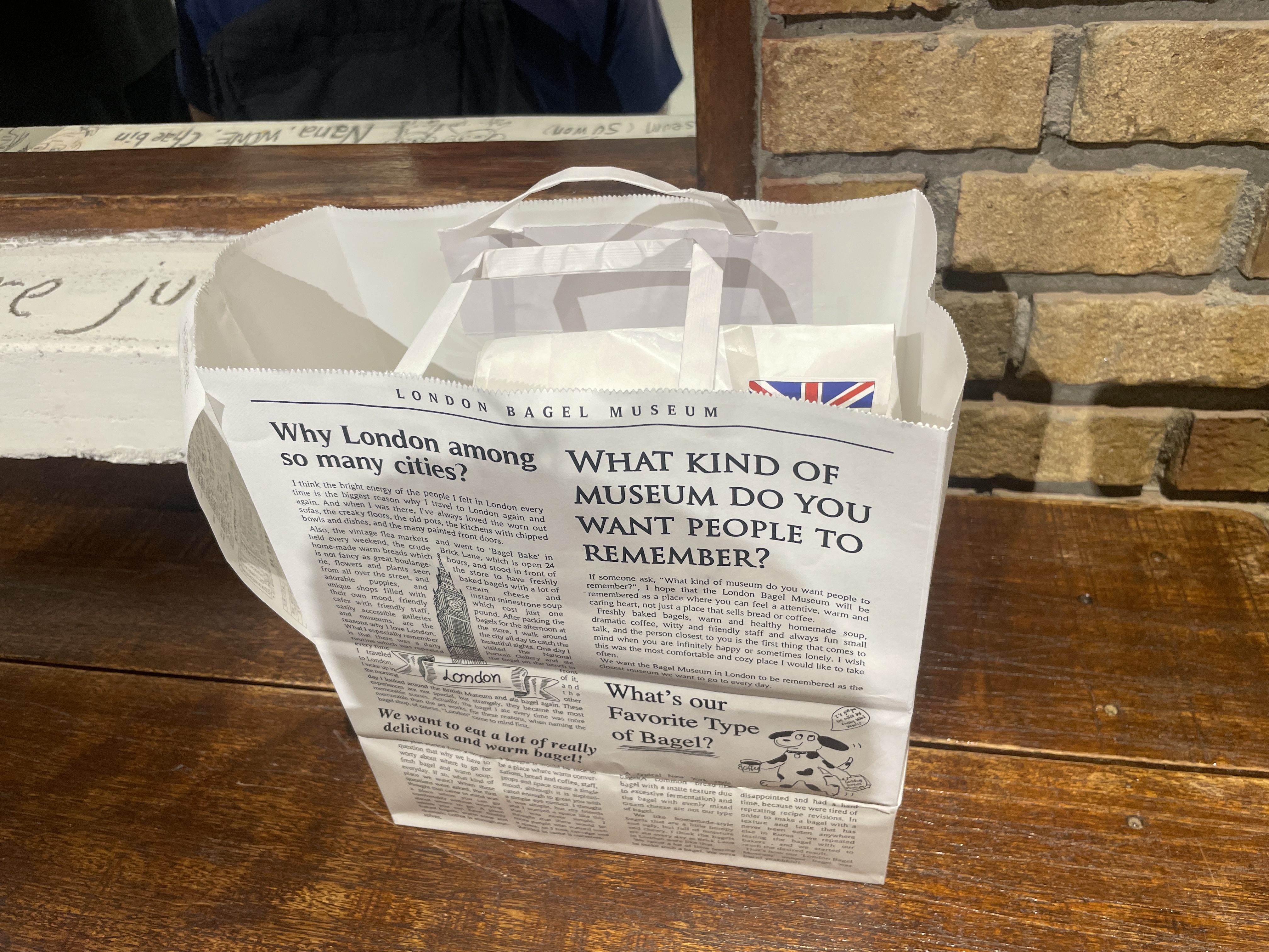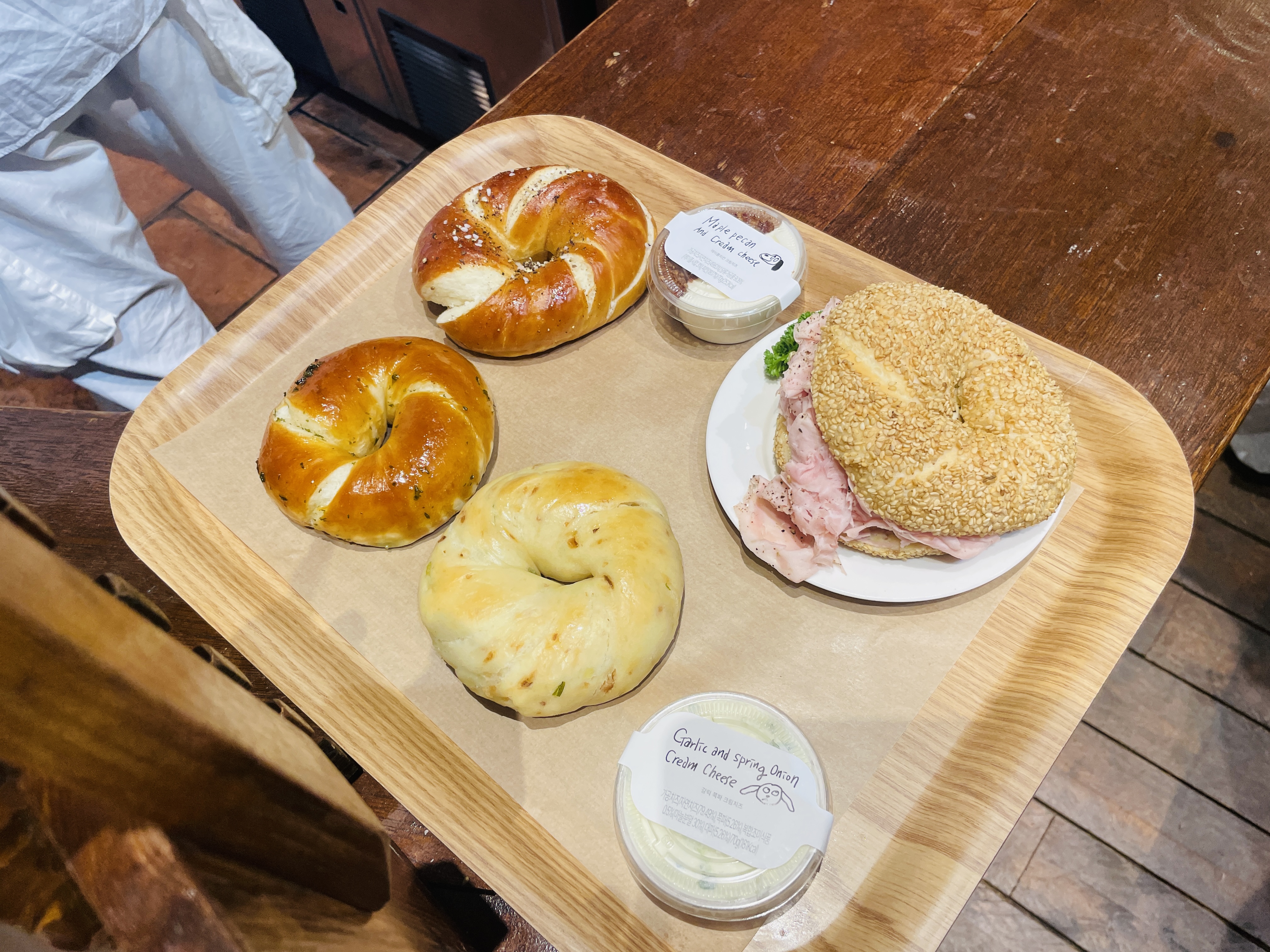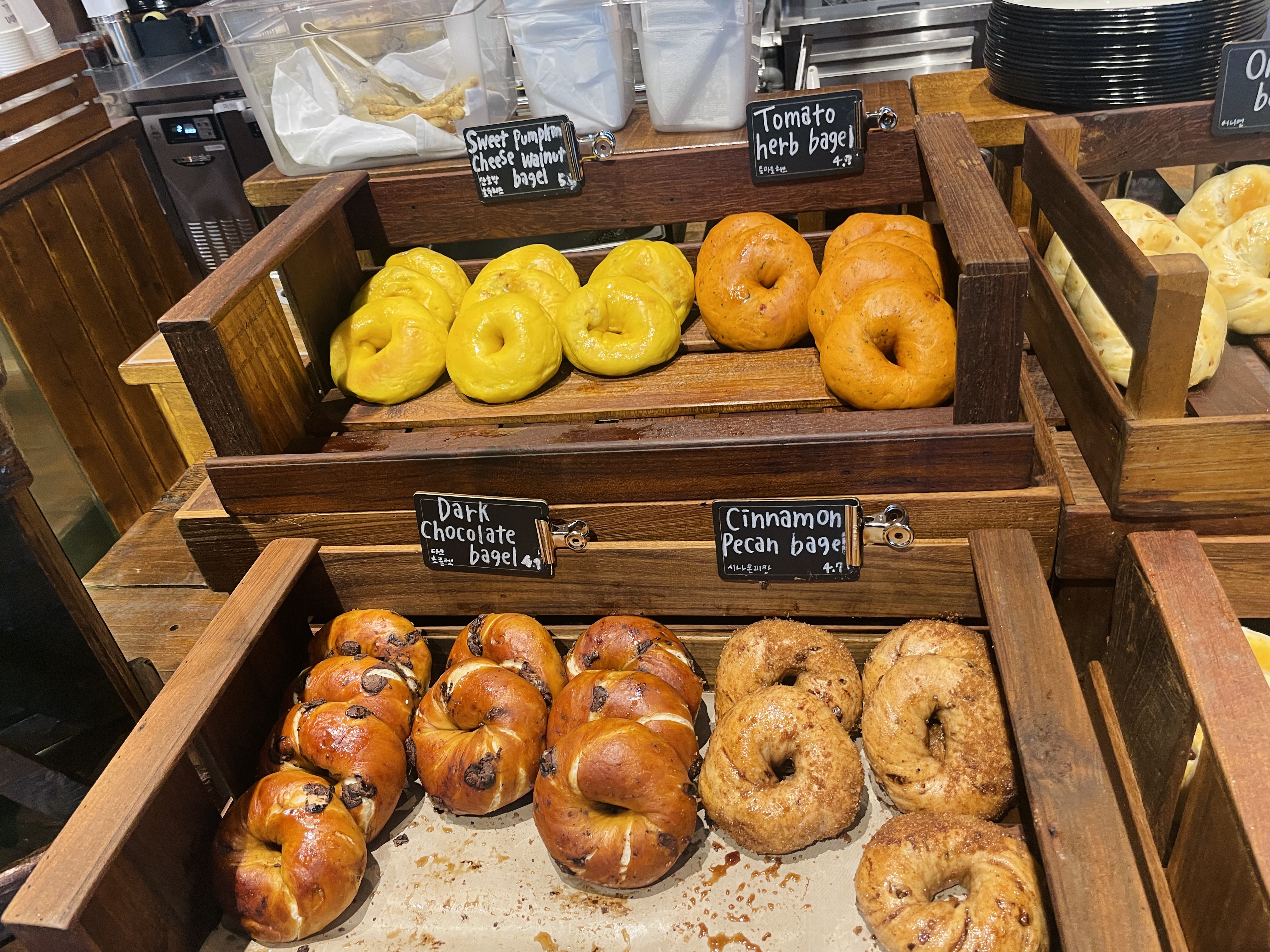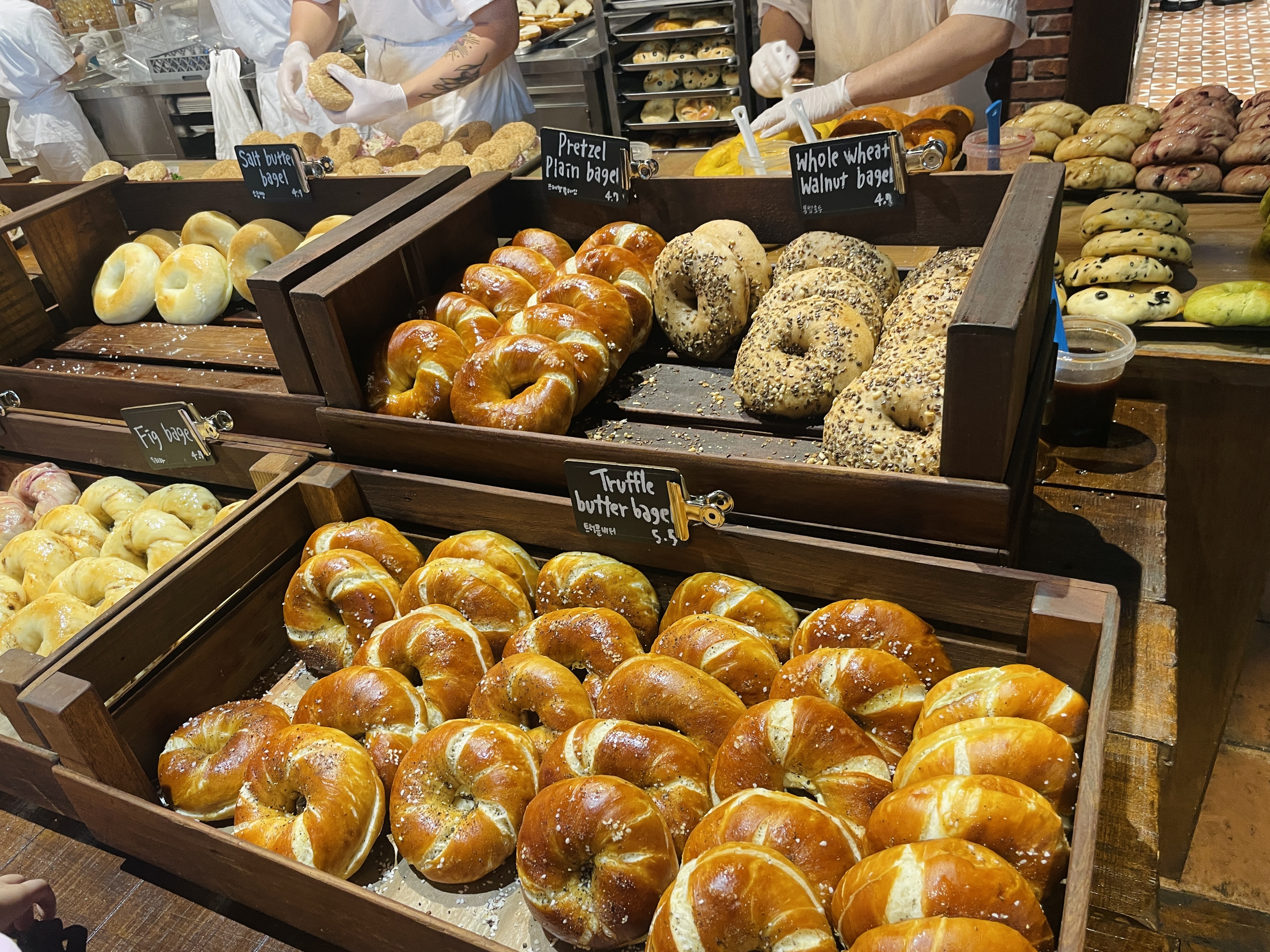 쇼핑백은 이렇게 생겼습니다. 구매한 것들 중 베스트는 잠봉버터샌드위치 + 파갈릭크림치즈 땅땅땅. 크림치즈는 아는 맛이어서 치즈를 즐기지않으면 안 사셔도됩니다. 샌드위치 가격이 진짜 미쳤는데, 그래도 맛있어요. 오히려 베이글을 안사고 샌드위치를 살걸 싶다니까요. 샌드위치에 붙어있는 깨가 비호감이었는데 그게 붙어있어서 고소하고 햄도 덜짜게 해주고 맛있었습니다. 그 다음으로 괜찮은건 트러플버터베이글이에요. 렌지 돌려먹었더니 트러플향이 싸악 나면서 단짠조합이에요. 양파나 갈릭은 예상하는 그맛이에요.