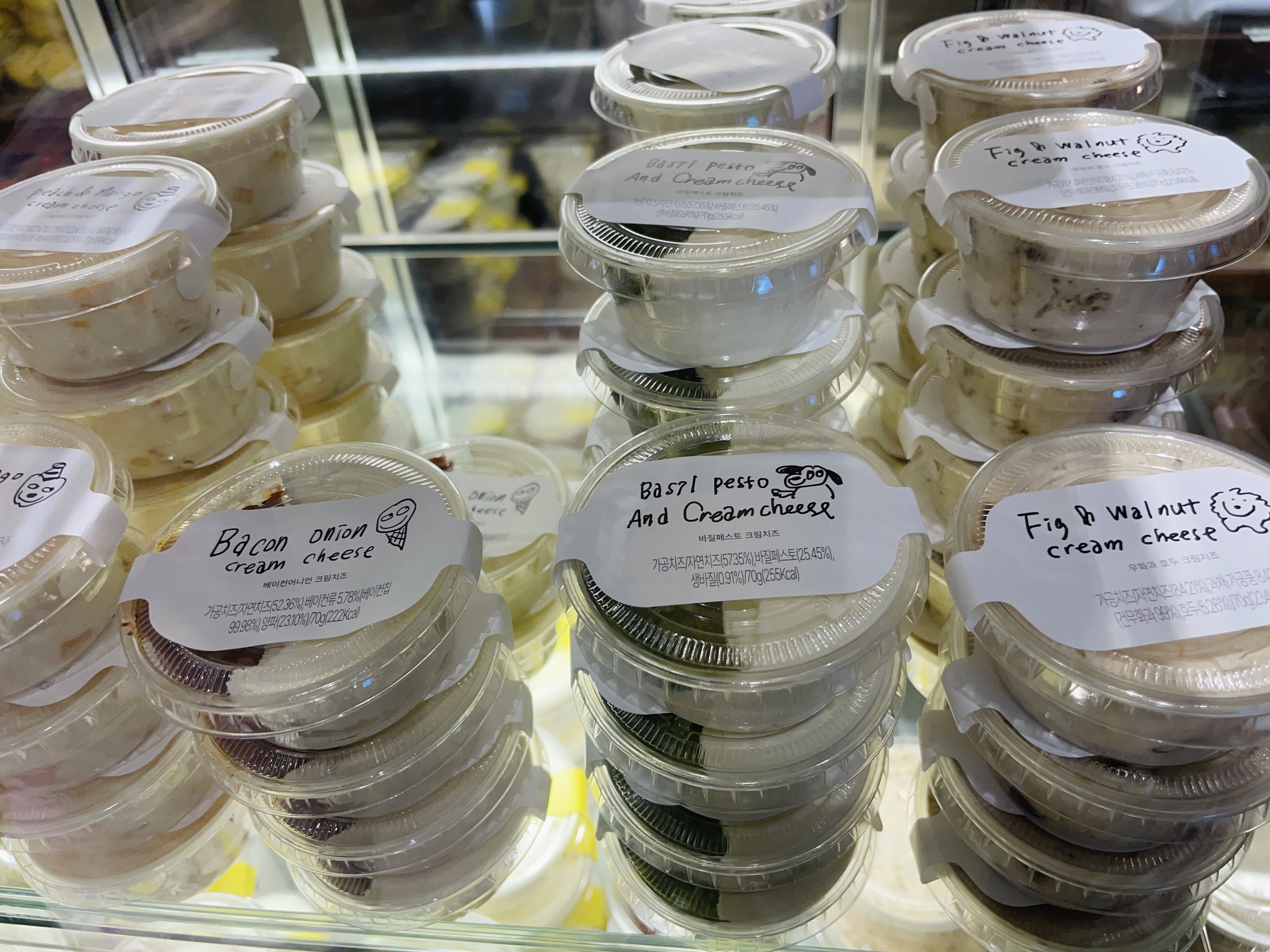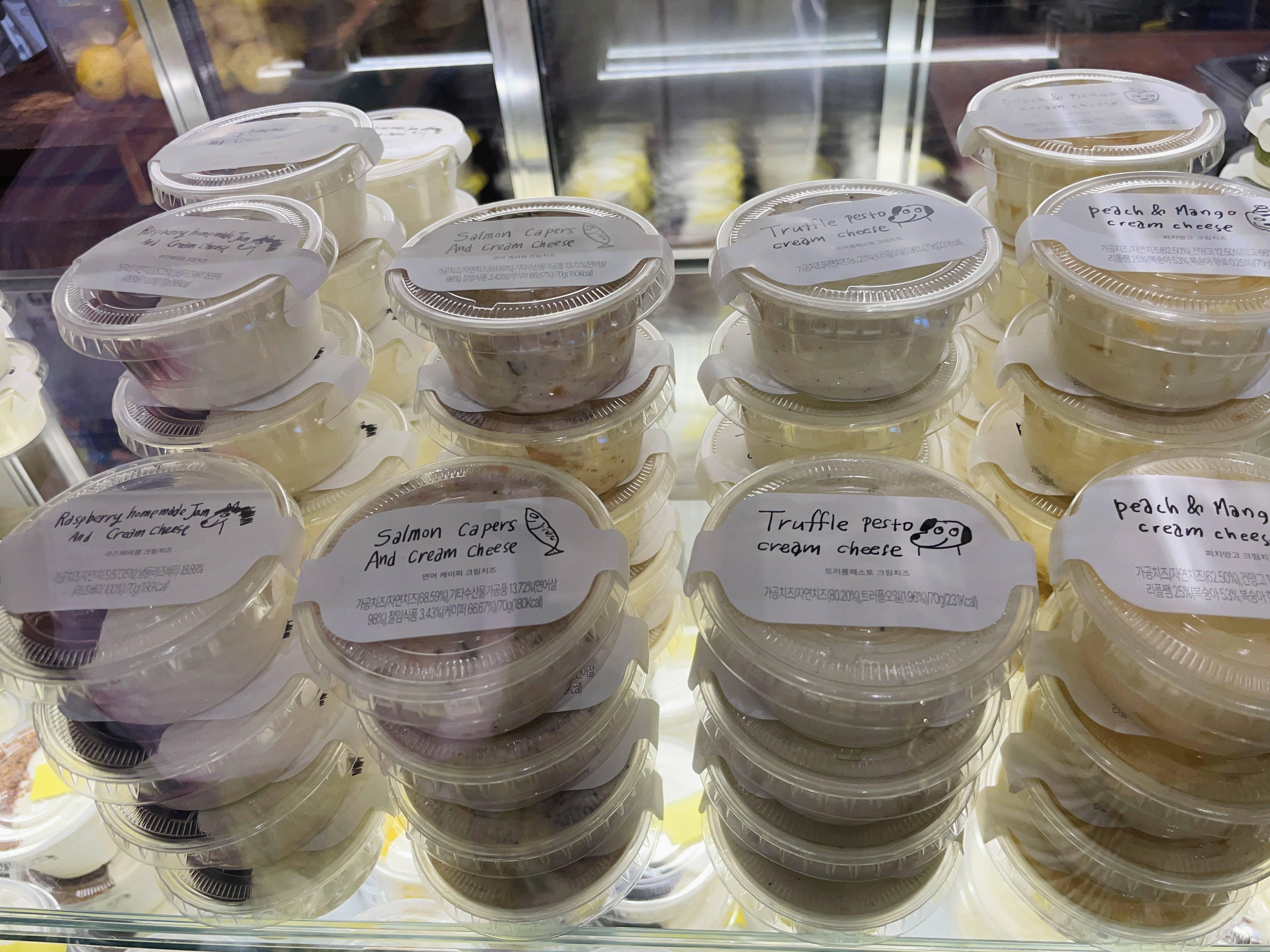 저는 베이글을 즐겨먹지도 않고. 공복이 오래되서그런가 딱히 먹고싶은게 없더라구요. 그리고 다 기름좔좔이거나 짜거나라서 그랬나봐요. 그럼에도 무난해보이는 얘들로 골랐습니다. 크림치즈는 경험삼아 두개구매했는데, 저게 개당 3,800원이였더라구요. 저거 빼고 샌드위치를 하나 더 살걸..