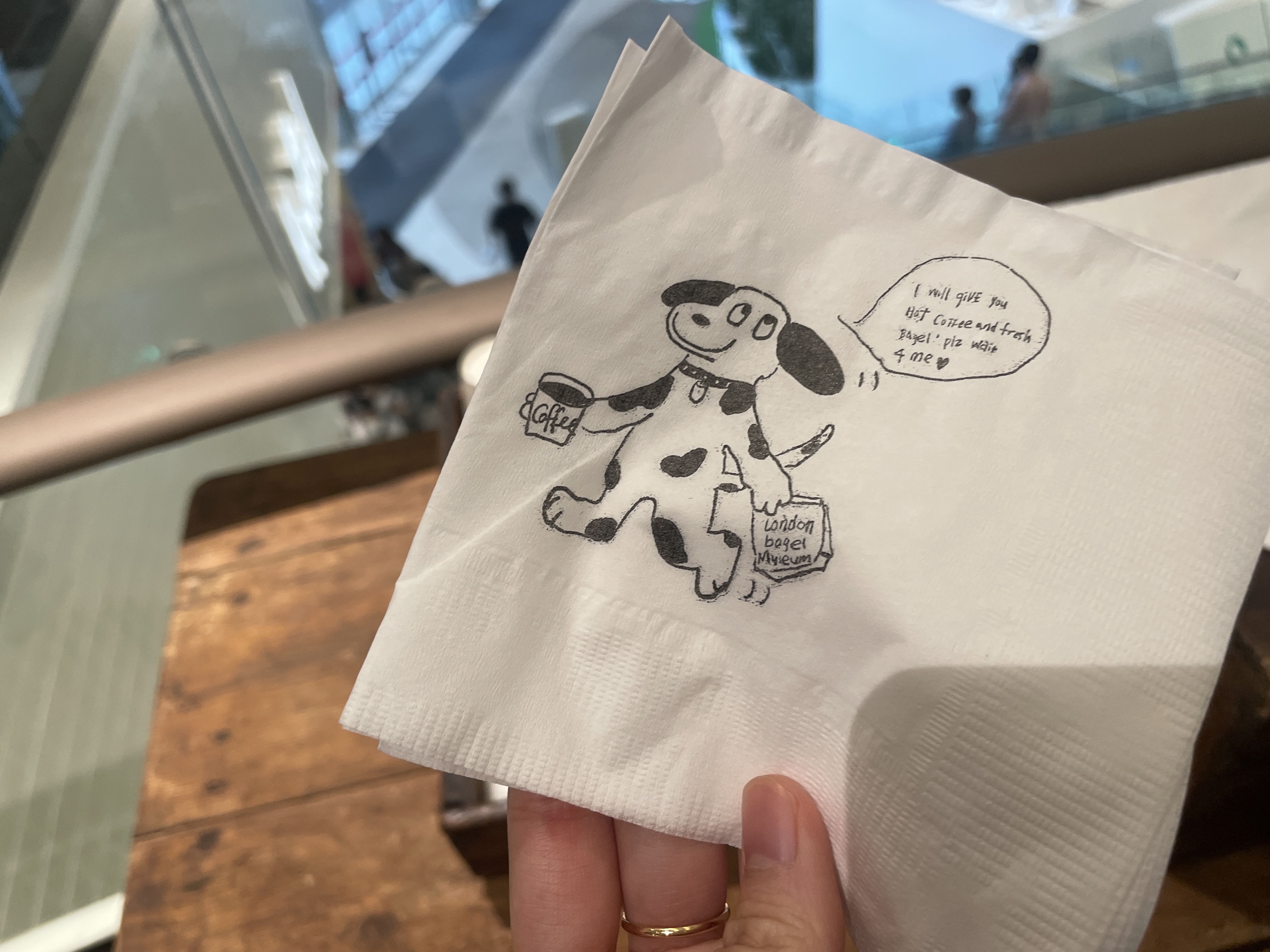 휴지에는 I will give you hot coffee and fresh bagel. plz wait 4 me 이라고 적혀있습니다. 그래 제발 베이글 좀 줘라 줘!!