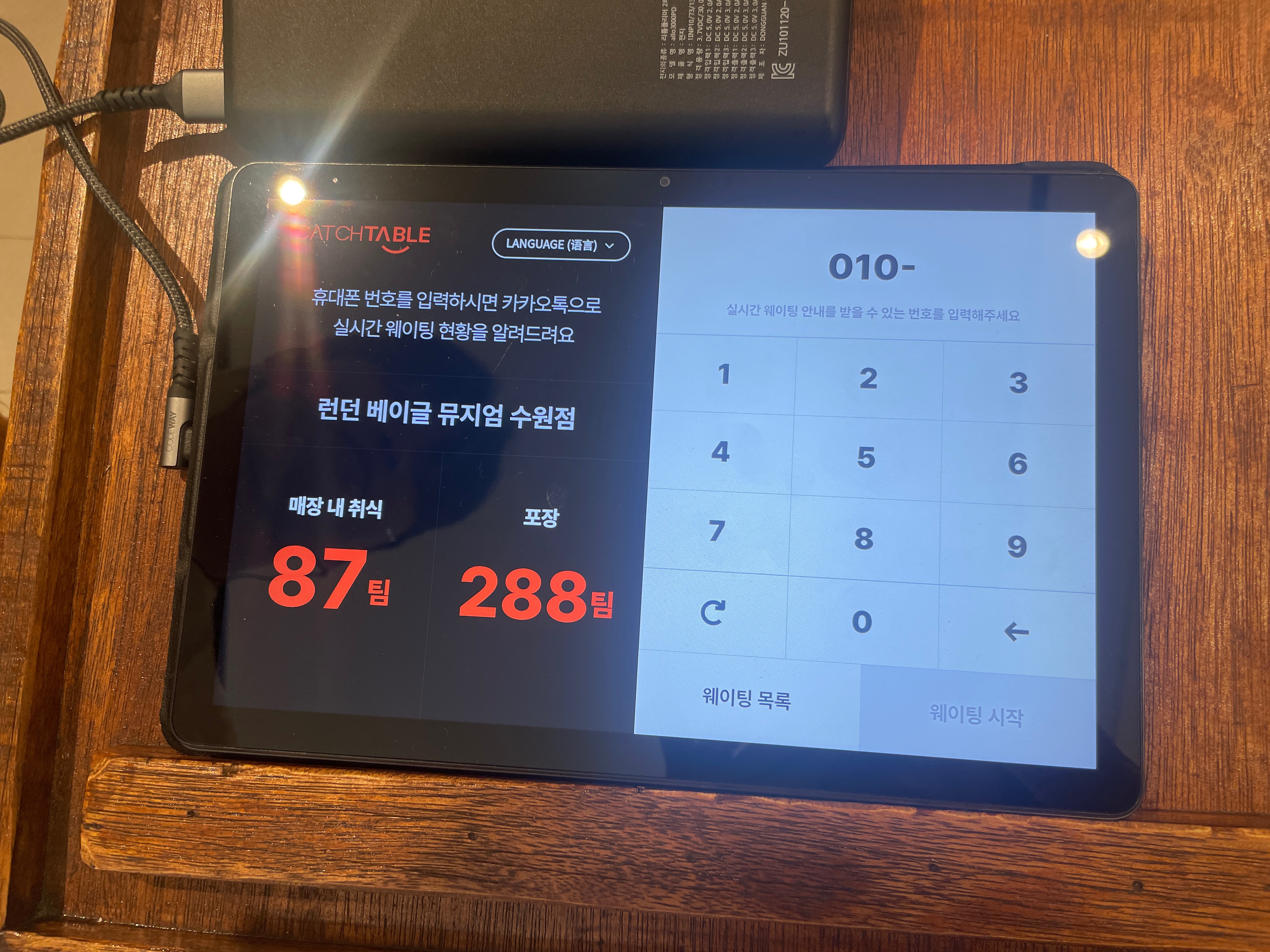 캐치테이블 어플에는 5번 게이트 앞 현장접수한다고 나와있지만 잘못된 정보이고, 실제로는 가게 바로 앞에서 예약을 받고 있습니다. 그마저도 5분정도 줄서서 대기등록을 할 수 있었습니다. 휴대폰 번호와 매장내취식/포장을 선택하면 끝