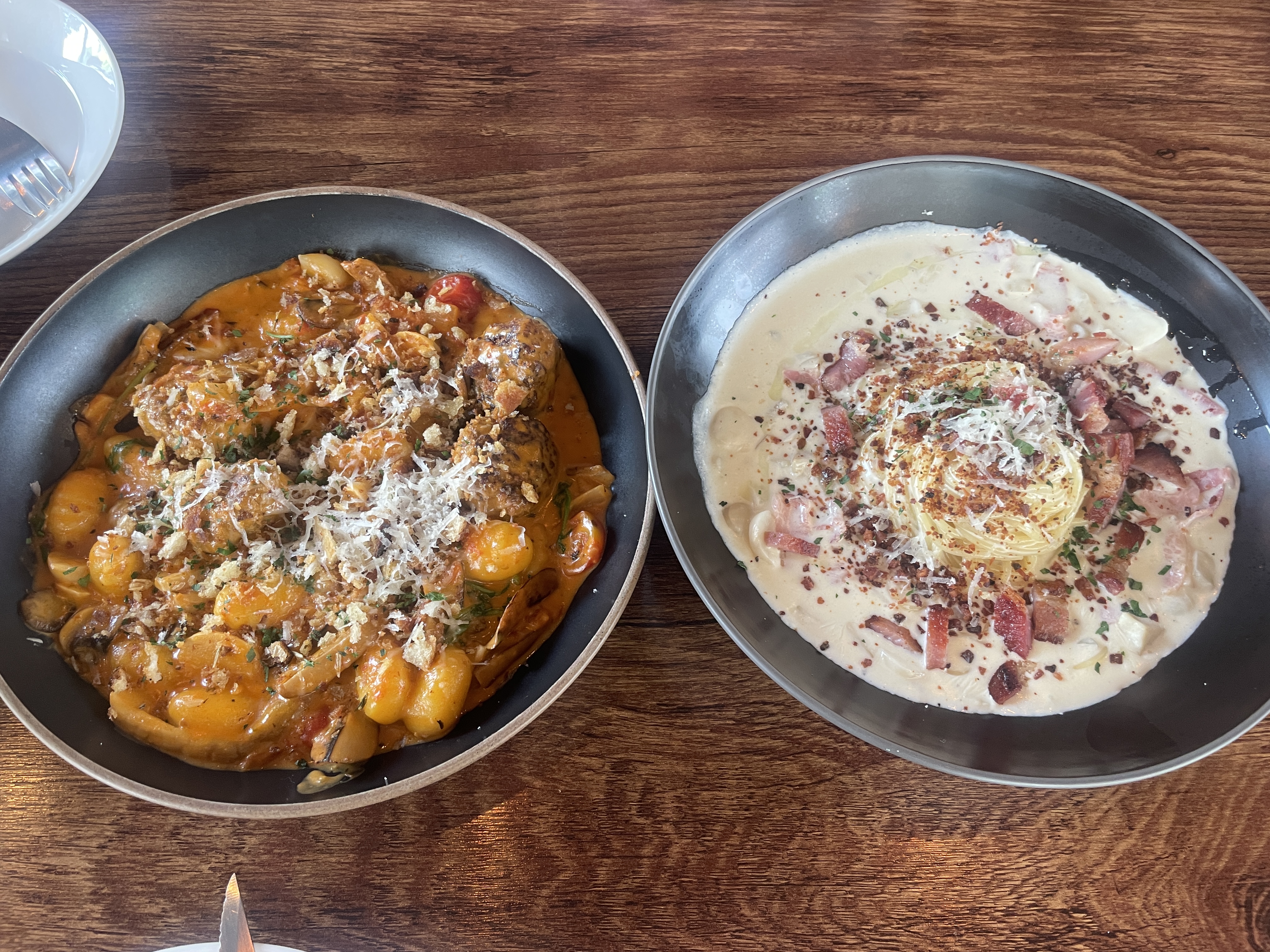 문제는 뇨끼입니다. 18,000원인데 밀가루반죽 맛만 납니다. 일반적인 감자 치즈 뇨끼를 생각하시고 주문하시면 낭패를 볼 수 있습니다. 그나마 바질이 들어간 함박은 맛있었습니다. 소스가 로제긴 한데 몇입 먹으면 질리는 맛이에요. 메뉴판에 매콤하다고 해서 기대했는데, 매콤했으면 좀 달랐을 겁니다.