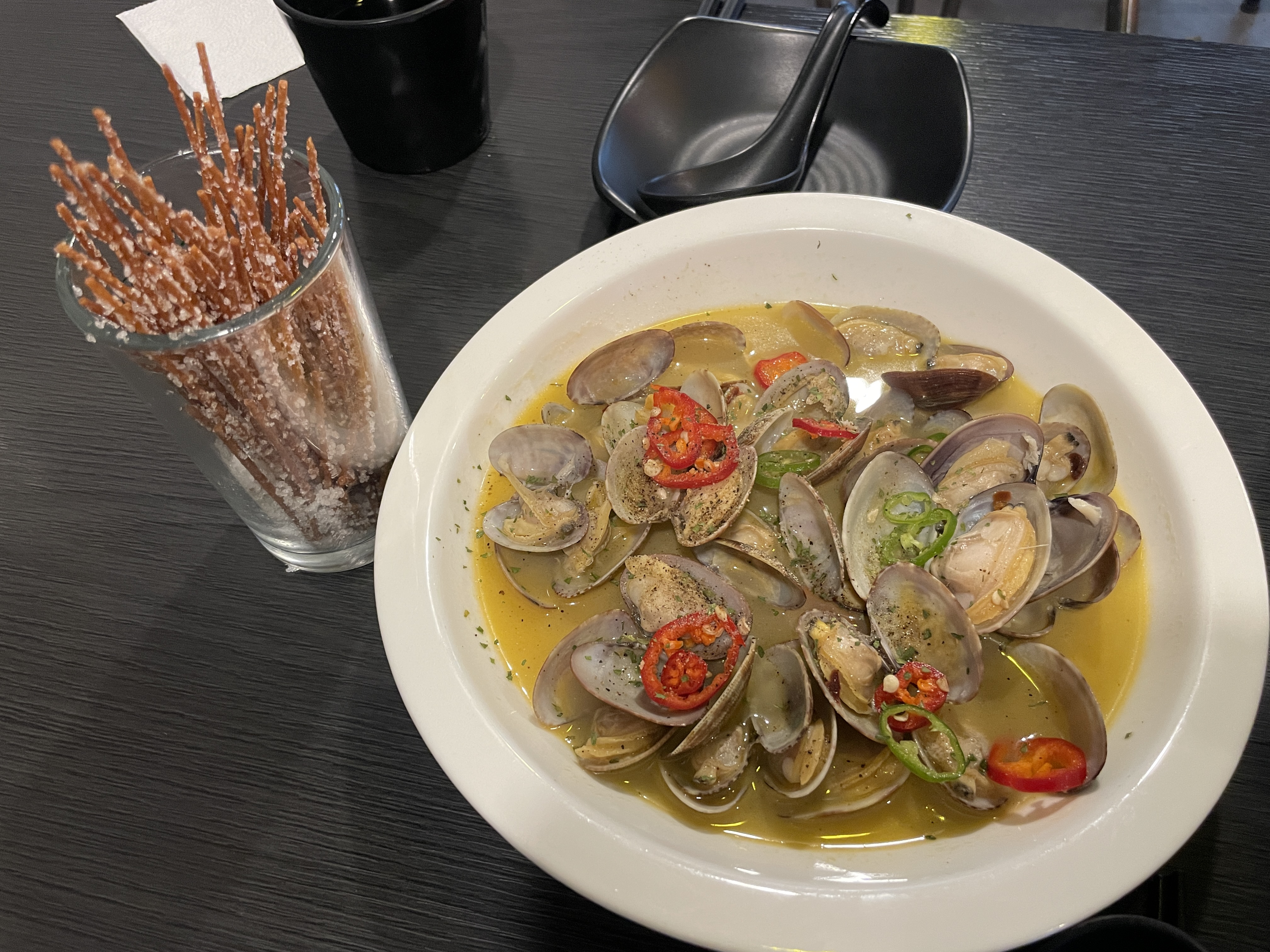 기본안주인 설탕파스타면이랑 바지락술찜입니다. 청양고추랑 버터맛이 잘 나는 술찜이었어요. 파스타면 추가가 있으면 봉골레 뚝딱인데 아쉽