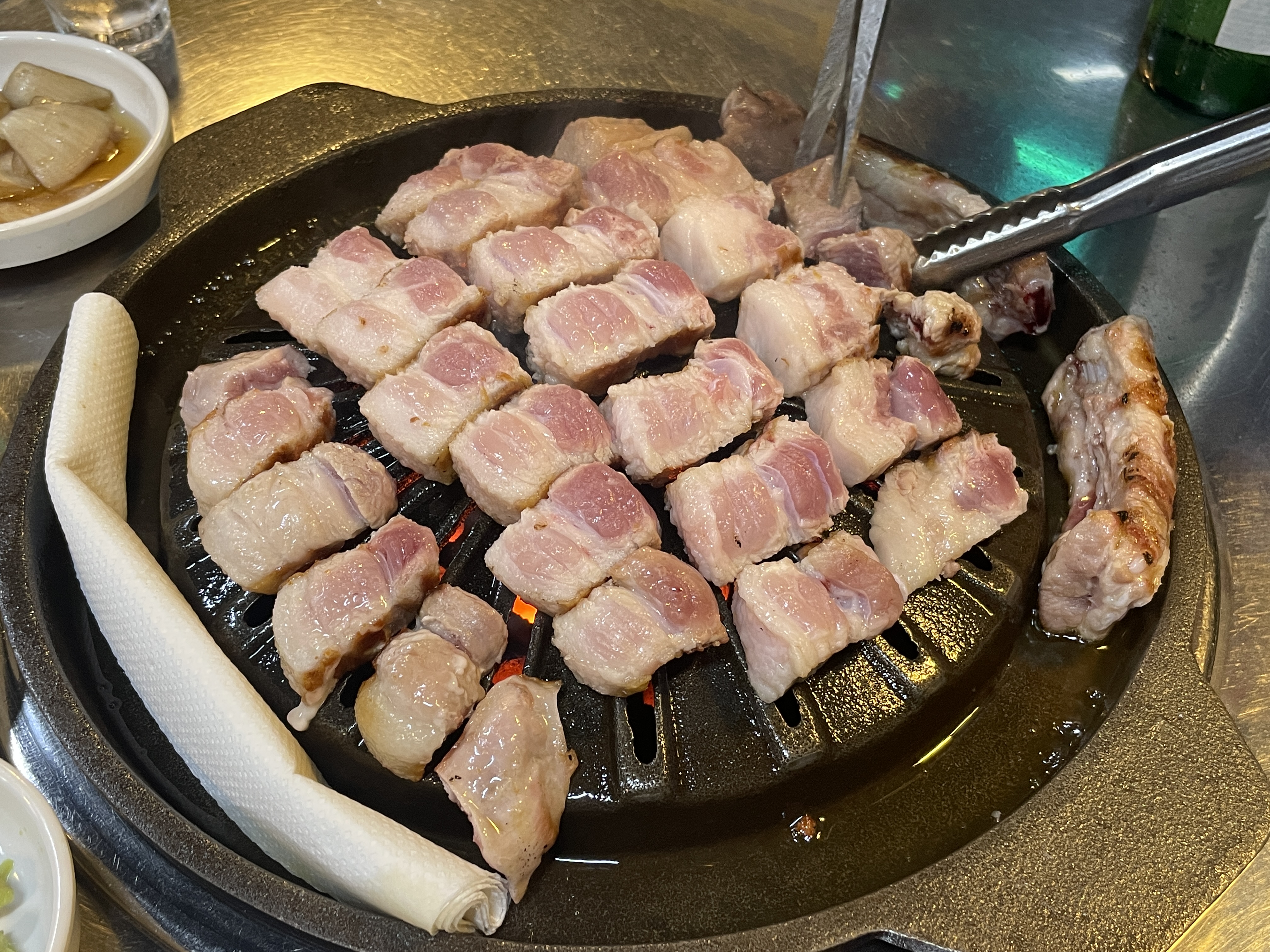 고기 올린거 보고있는데, 된장찌개도 무료로 주셨습니다. 요새 된장찌개 추가가 기본인데 약간 감동