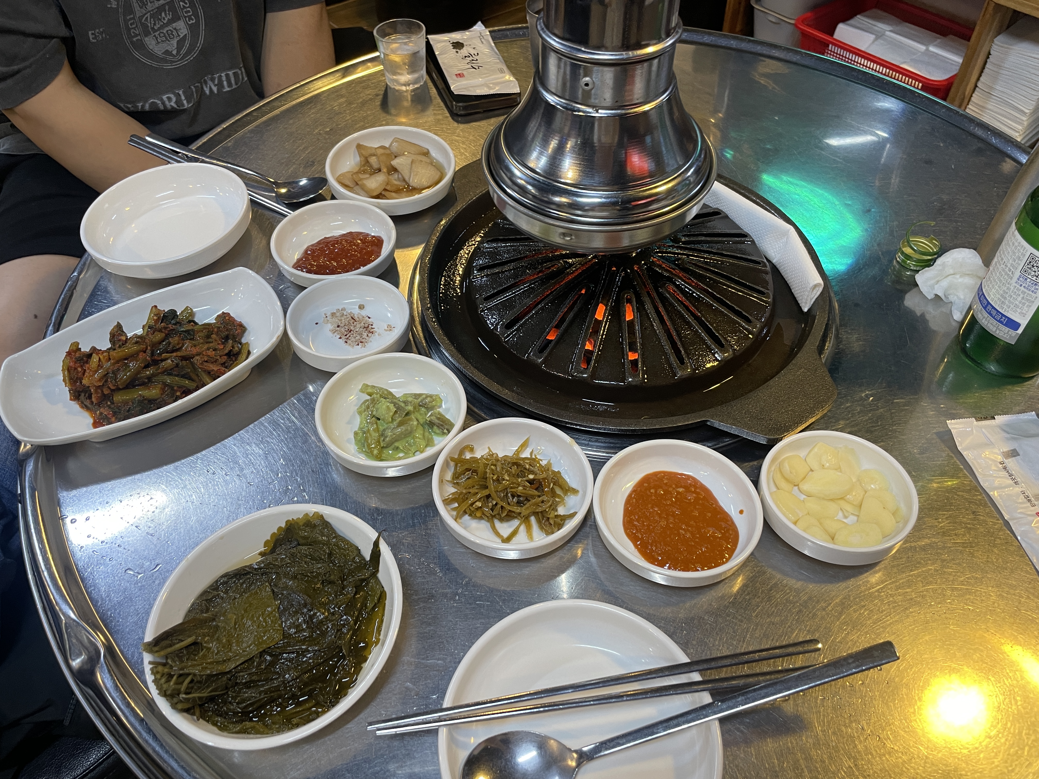 반찬 놓는 순서가 있다고 하셨음. 가만히 기다리기. 깻잎 넉넉히 주신거 보이시나요? 리필 안해도됨.