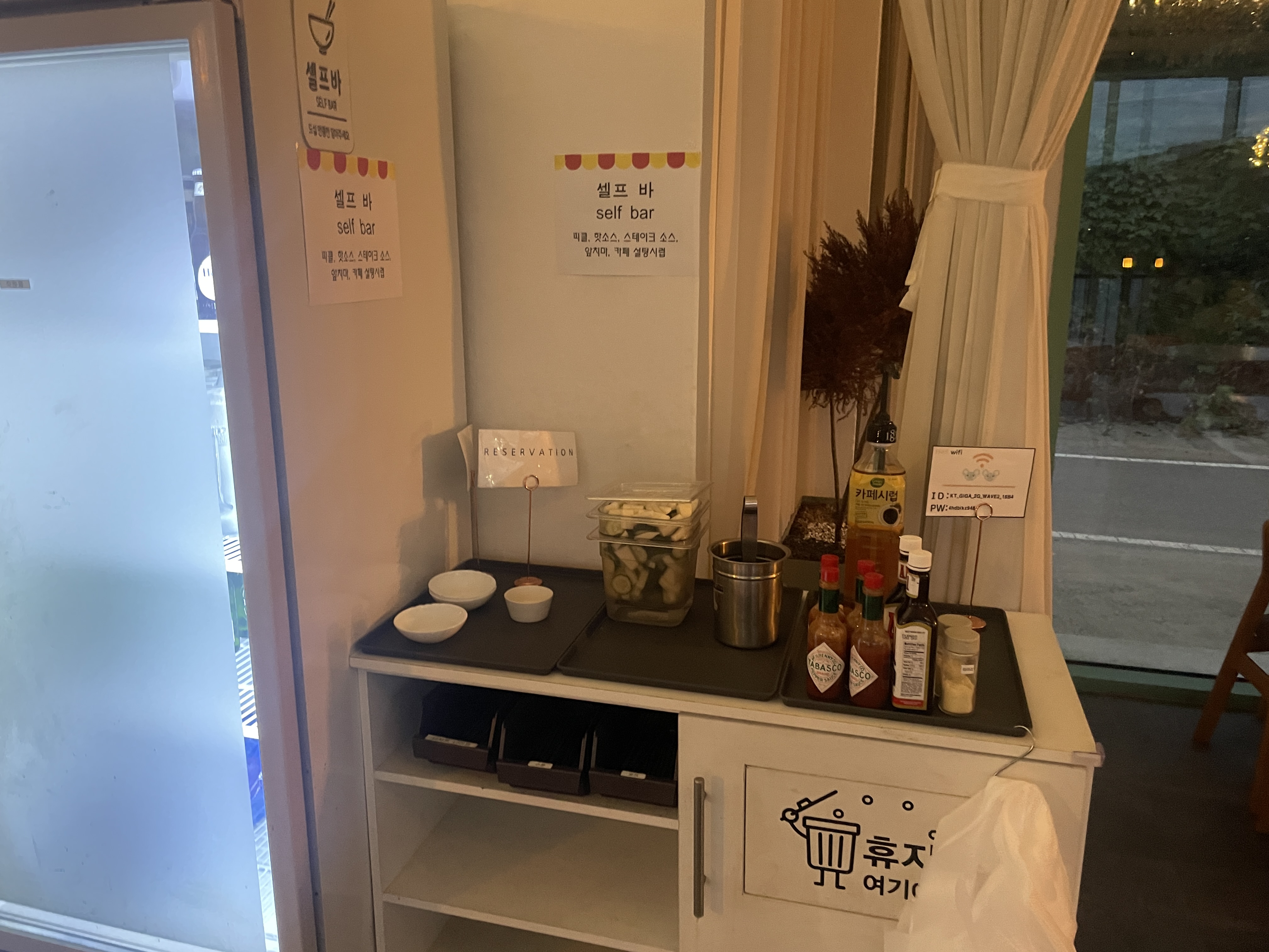 셀프바의 피클 타바스코 스테이크 소스 치즈가루 앞치마