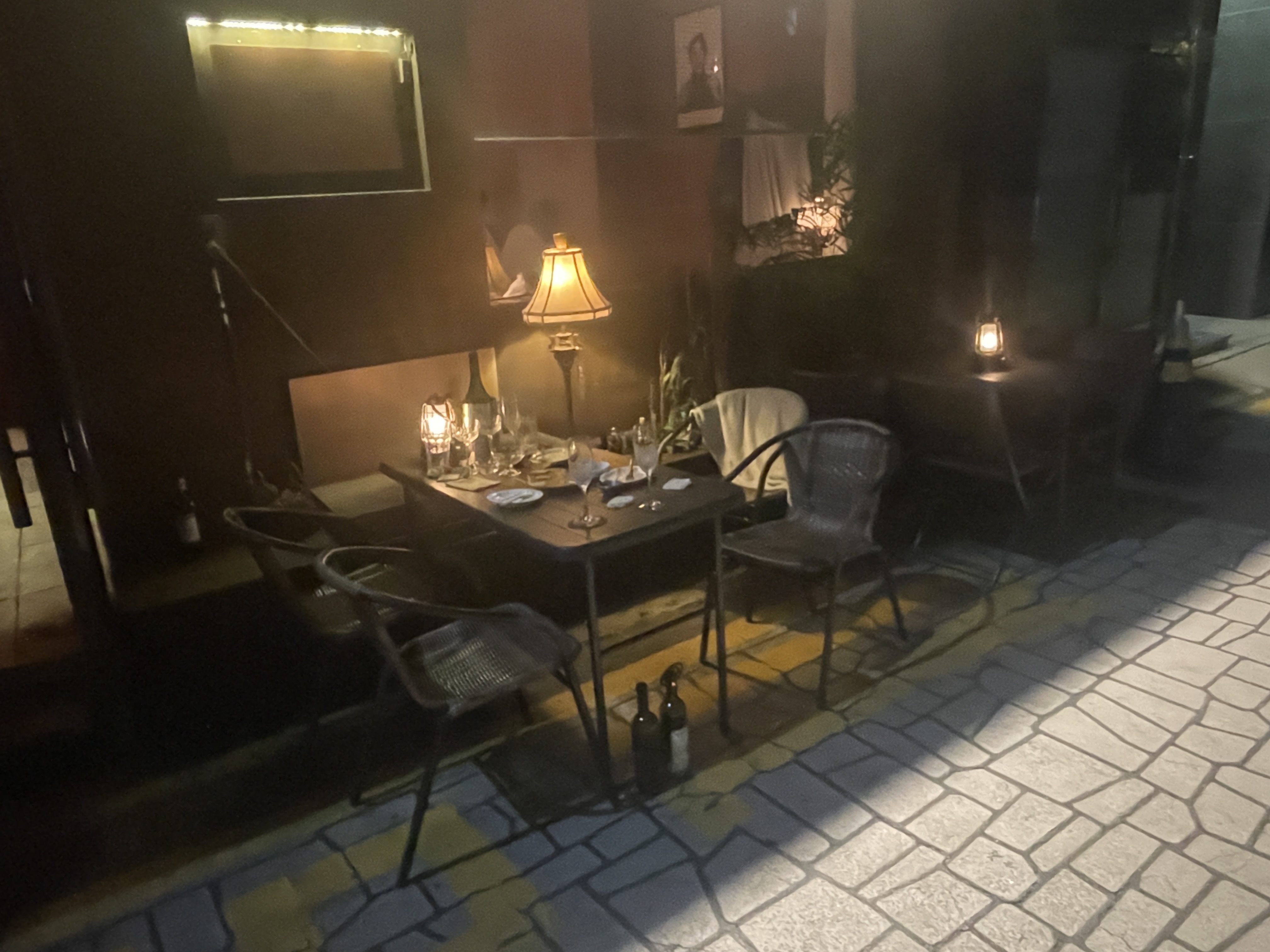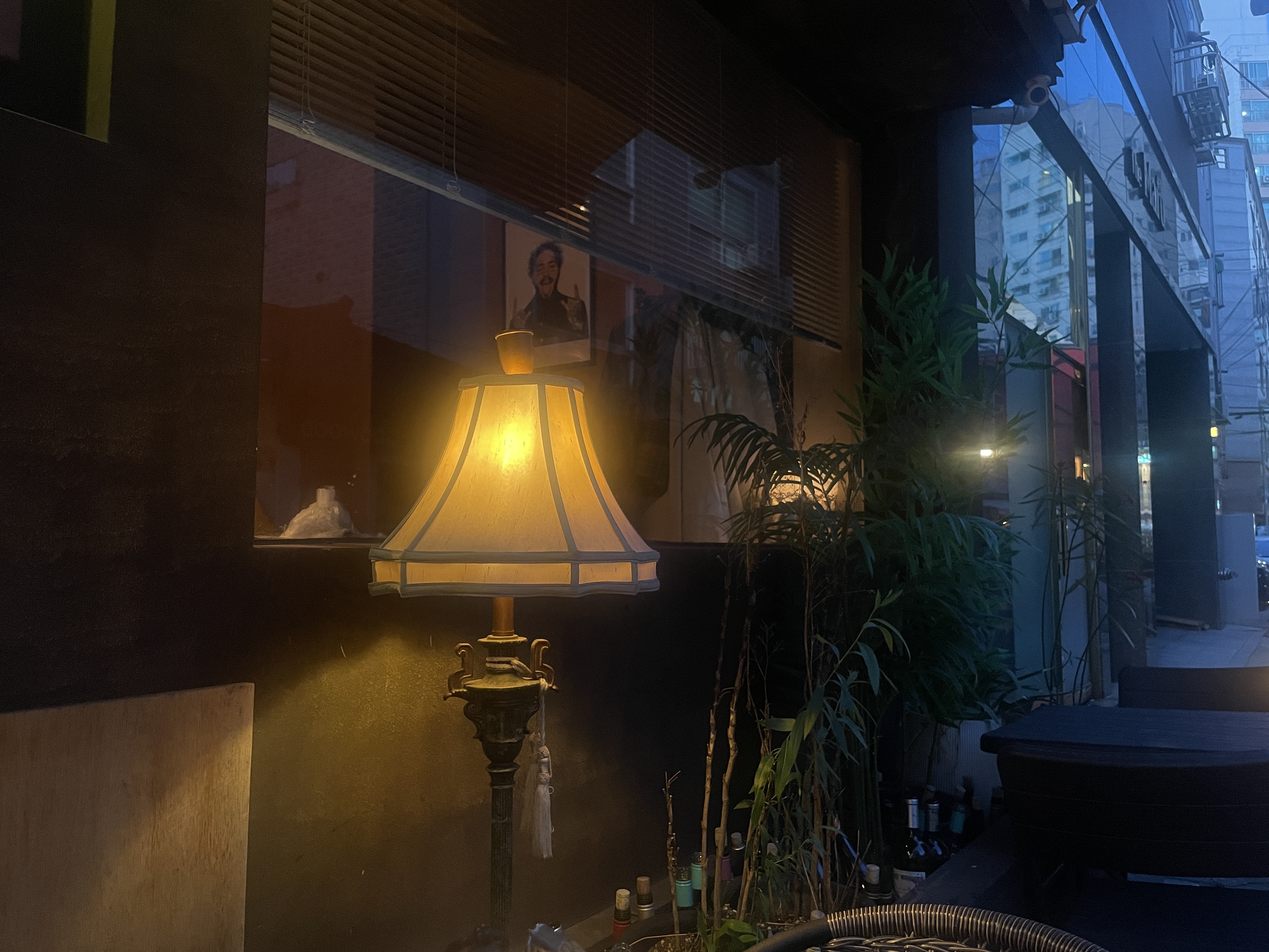 야외는 3명이상 앉기좋고 야장느낌 한스푼 얹어서 어두워요.