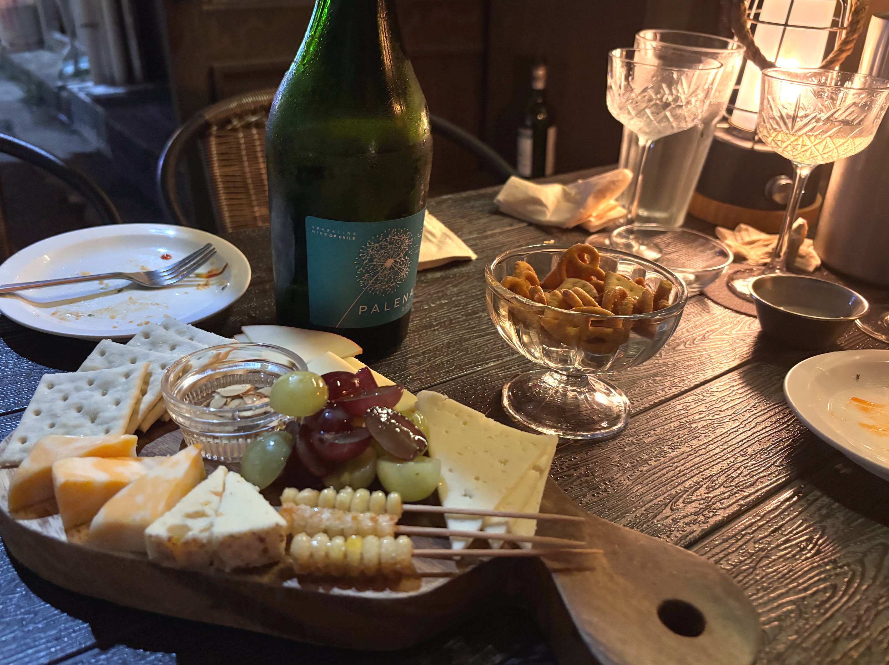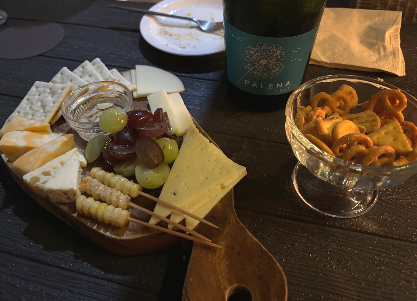 로망스 와인 다먹고 팔레나브륏 와인과 치즈플래터를 추가로 주문합니다. 기본안주는 치즈 크래커,프레즐입니다. 쿰쿰한 과자맛. 솔트프레즐이 더 좋은데 아쉽.