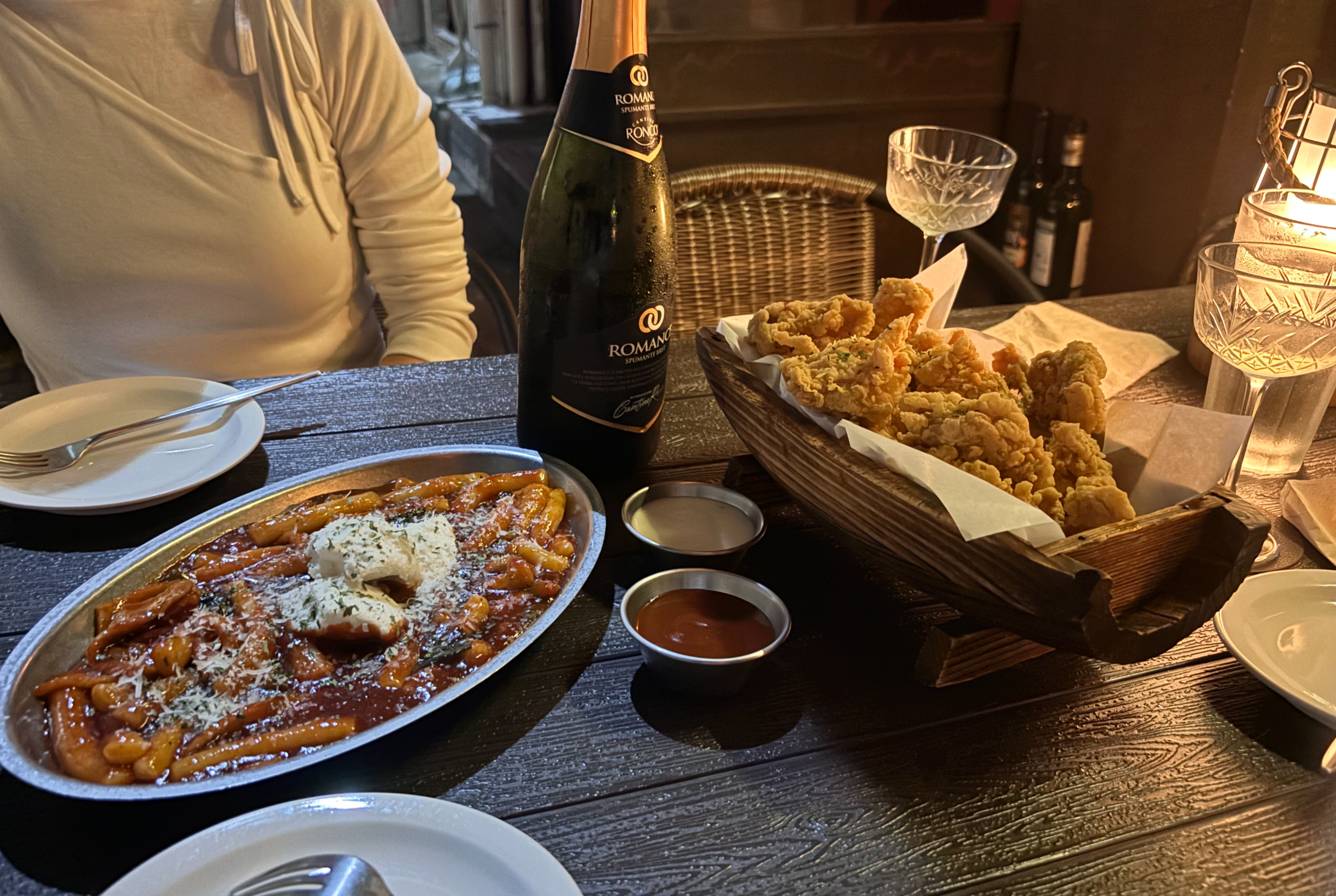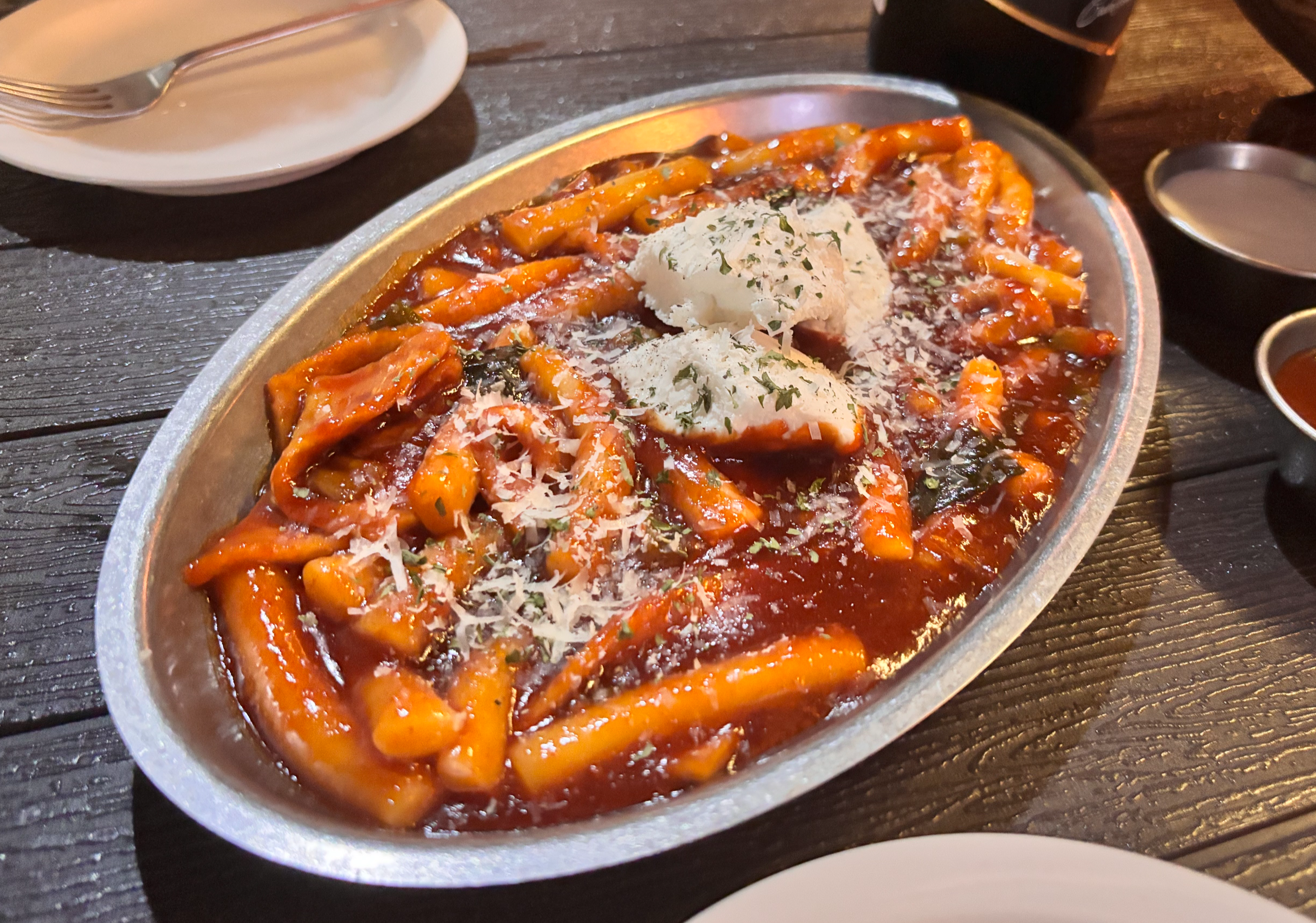 리코타치즈를 살짝 곁들인 매콤 떡볶이입니다. (아이폰16으로 찍은건 이렇게 빛이나네요. 따흡)