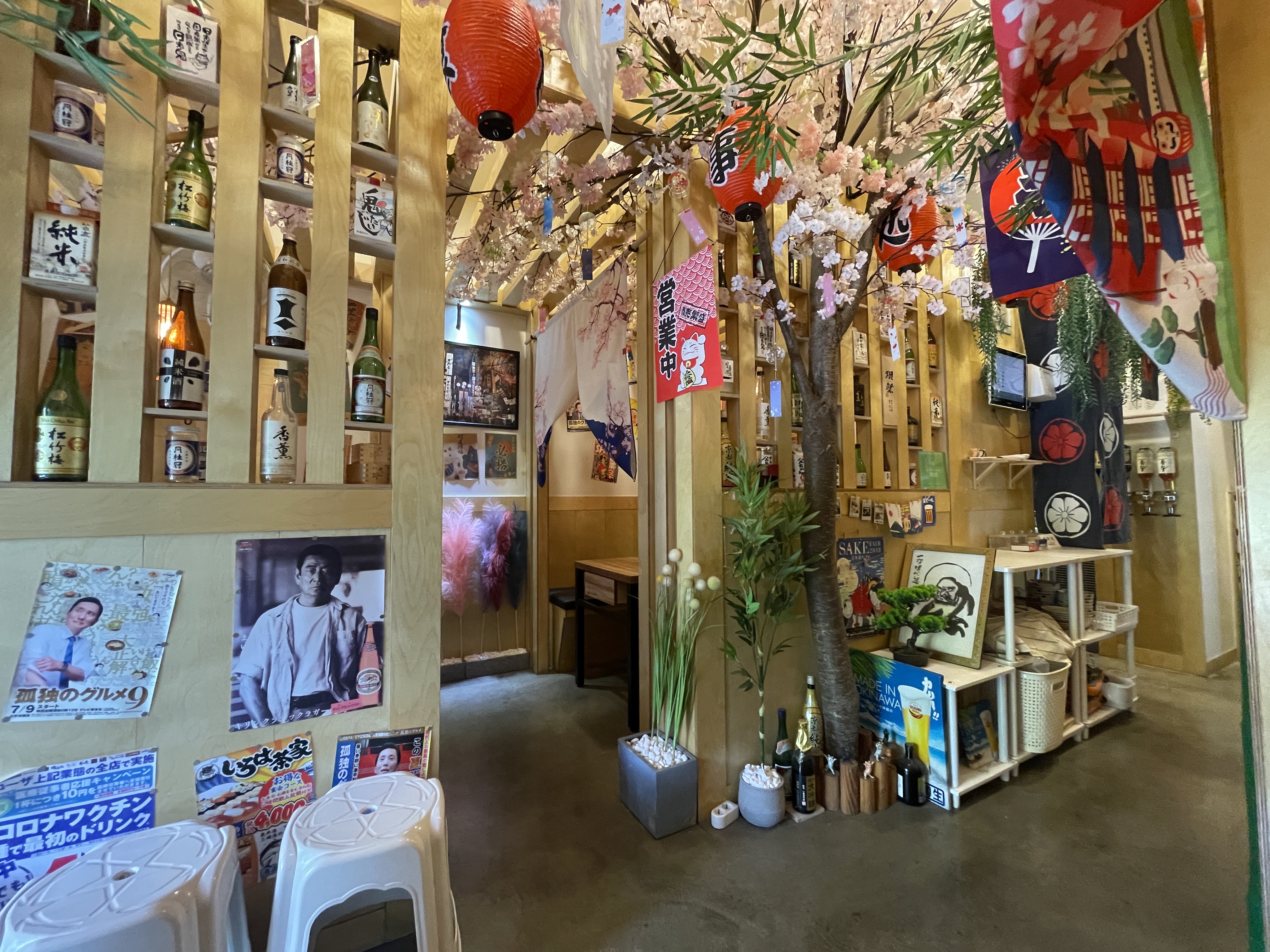 인테리어 구경하면서 기다려봅니다. 사케, 벚꽃, 일본포스터, 사진, 고양이로 잘 꾸며져있습니다. 인테리어 합격. 호요링 많아서 찍었어요. 아기자기.
