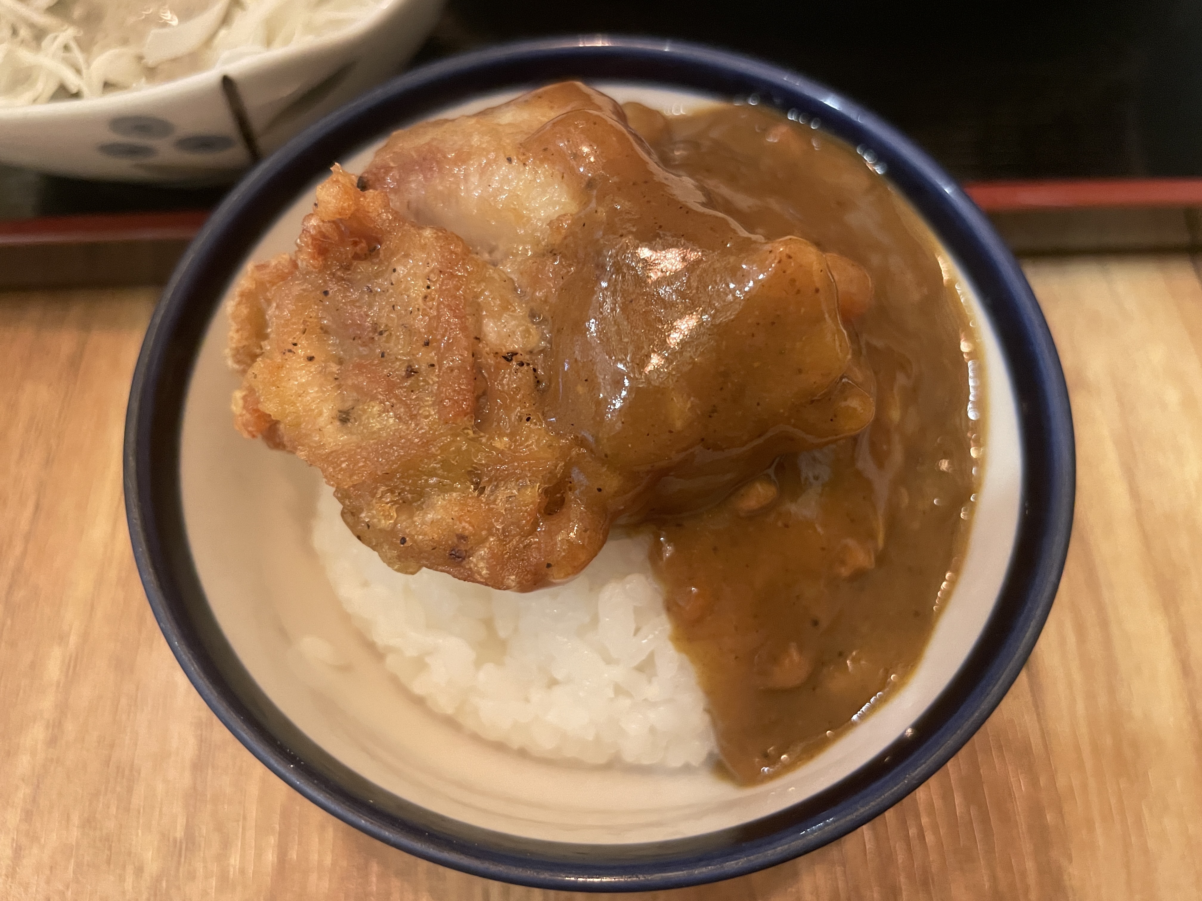 먼저 나온 가라아게카레입니다. 근데 밥 양이 왜이러죠. 진짜 위에서 찍어서 그렇지 밥이 산처럼 오목했어요.