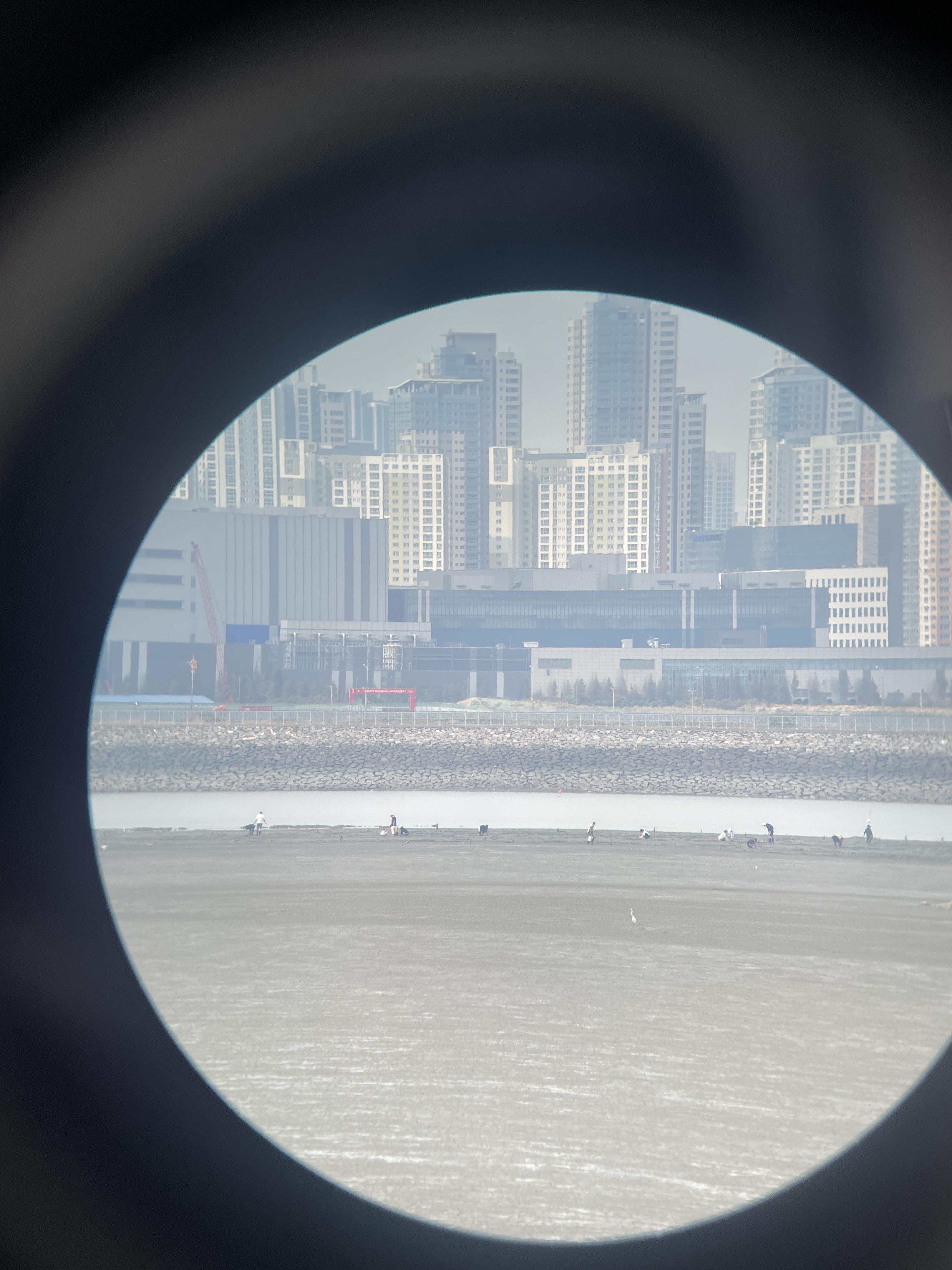 어느 정도냐면 이만큼!! 갯벌체험을 하는 사람들이 잘 보였어요. 돈 안 내고 무료로 깨끗한 망원경 본 게 오랜만입니다.