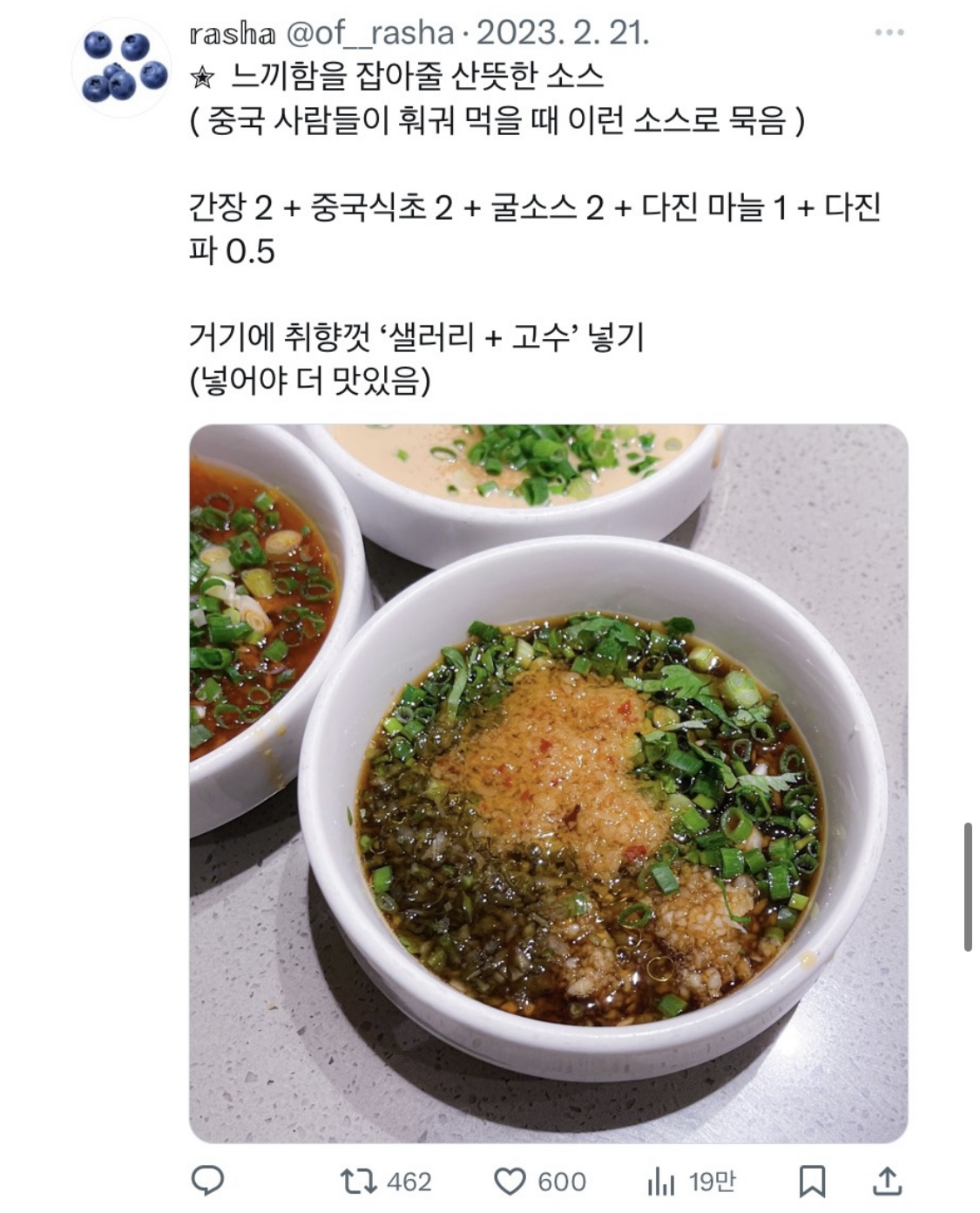 * 원어스 건희소스 ver 2 : 양파 3국자+ 다진파 한집게 + 태국고추 약간 + 간장 2+중국식초 0.7+다진마늘 0.5티스푼+굴소스 0.3티스푼+고추기름 0.3+참깨