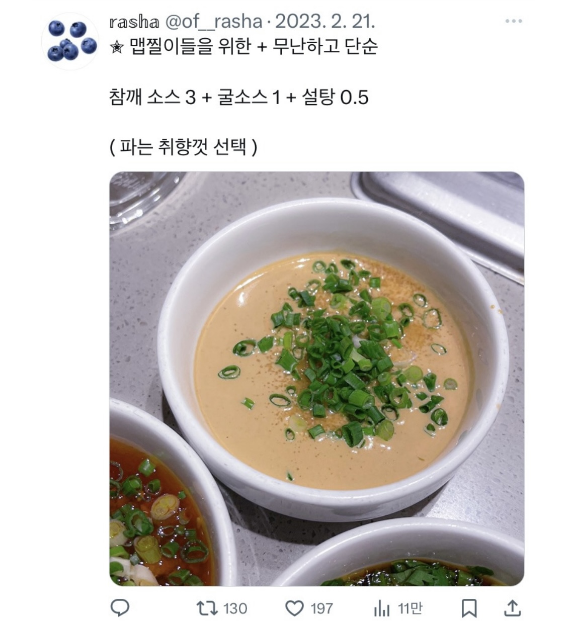 * 맵찔이 소스 : 참깨소스 3+굴소스 1+설탕 0.5