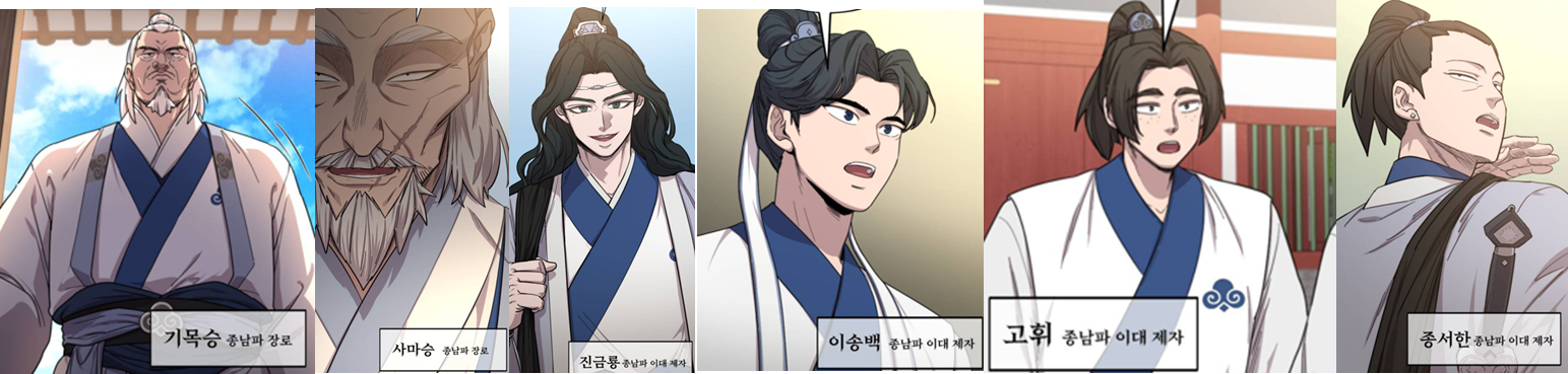 종남파 장로 기목승 / 사마승 / 이대제자 진금룡 / 이송백 / 고휘 / 종서한