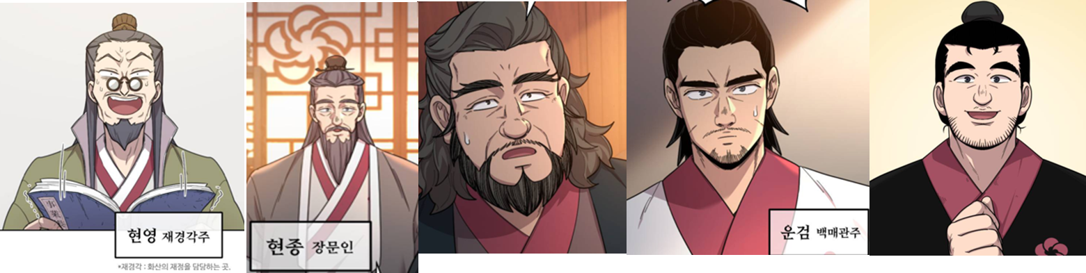 그러다보니 등장인물 매치가 잘안되서 웹툰 100화까지 등장한 인물을 추려봤습니다