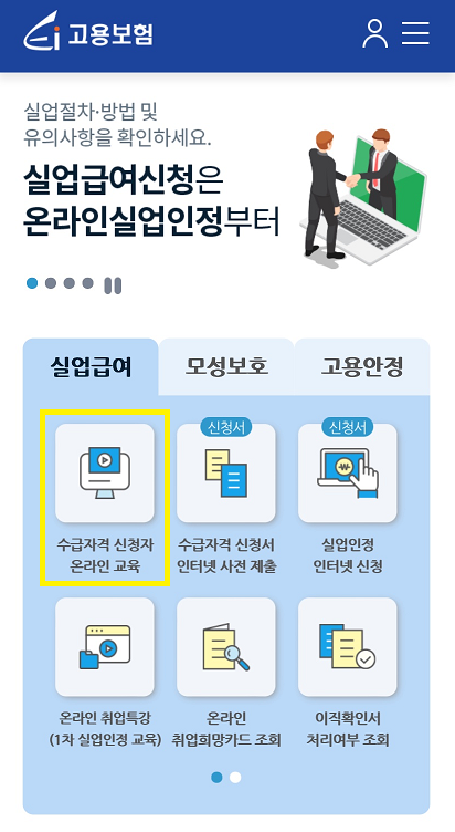- 인터넷 : 고용보험 홈페이지 개인로그인 - "수급자격 신청자 온라인교육" 이수