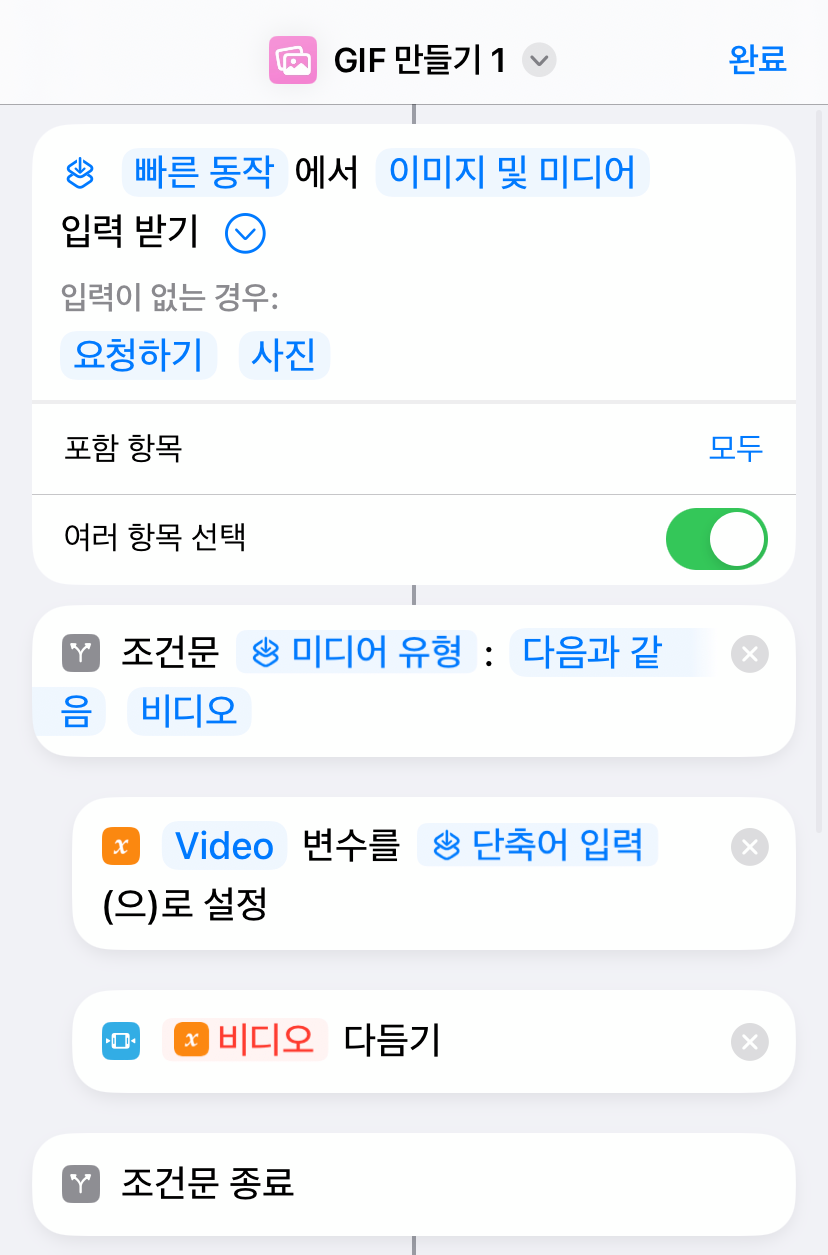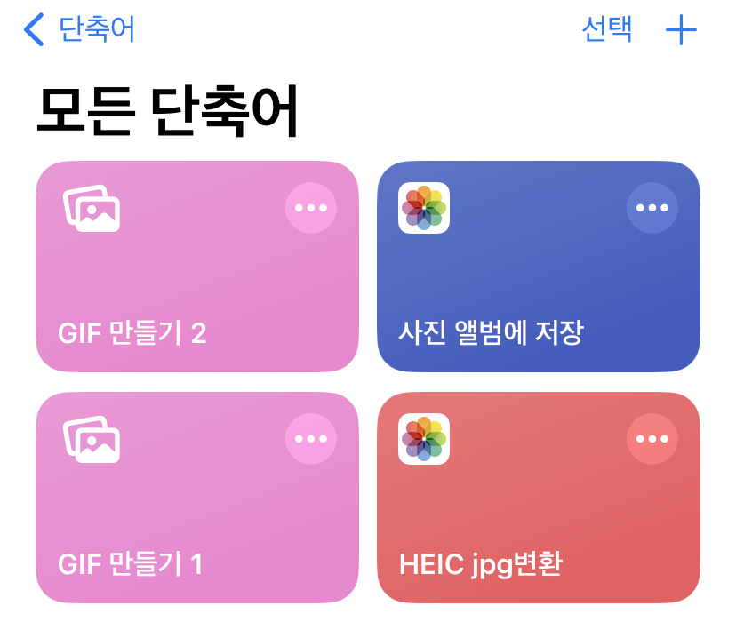 6. 모든 단축어 - "GIF만들기" - ... 을 클릭해줍니다.