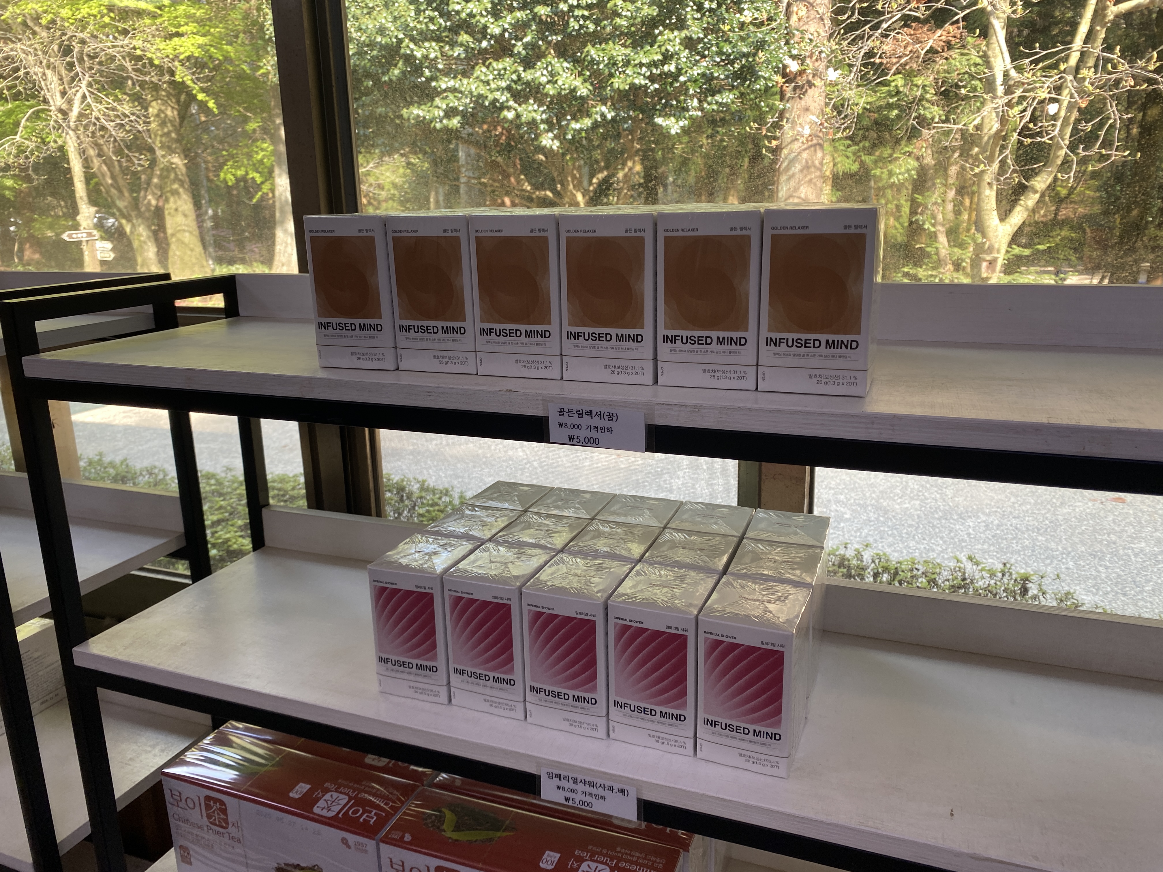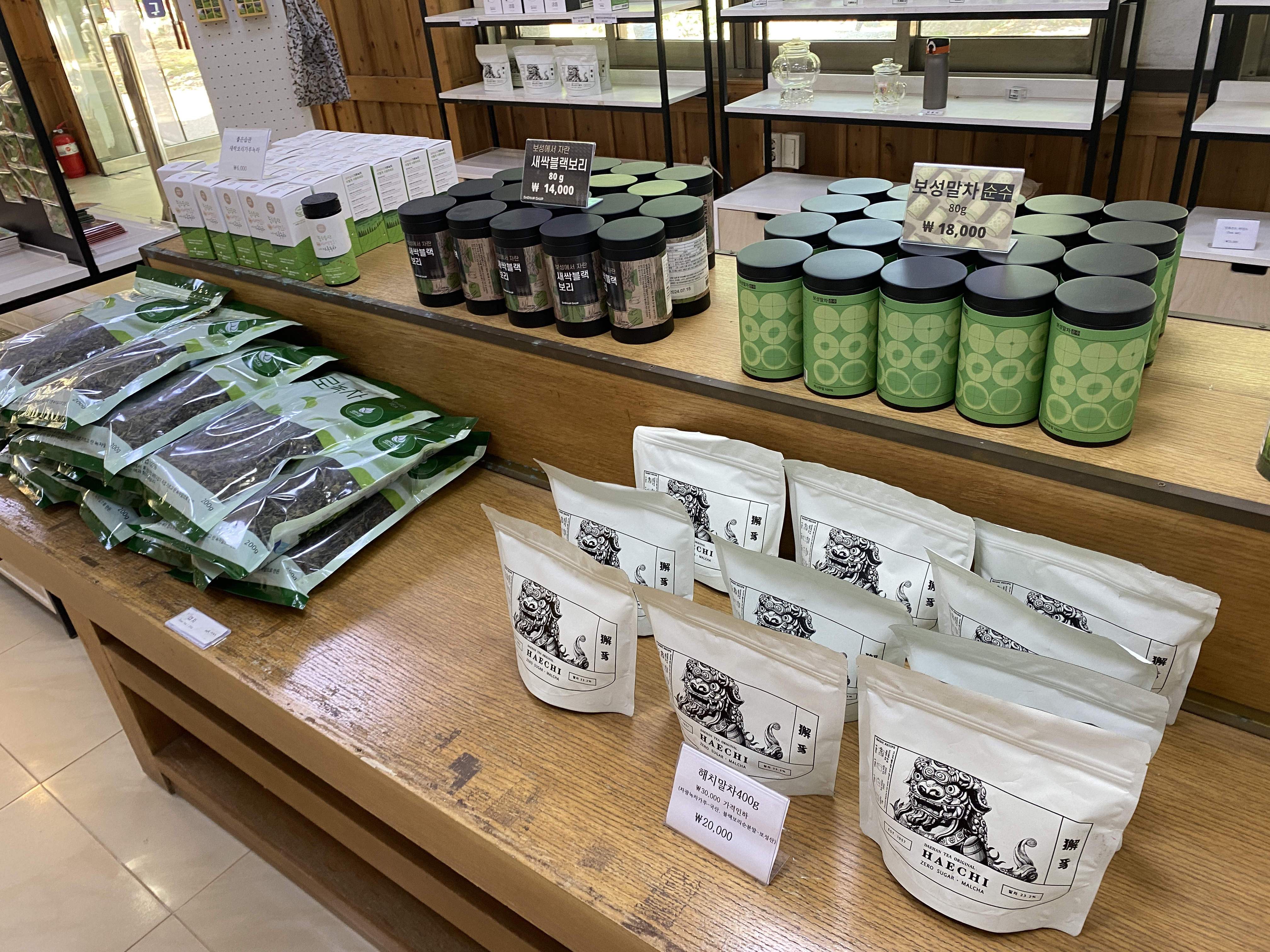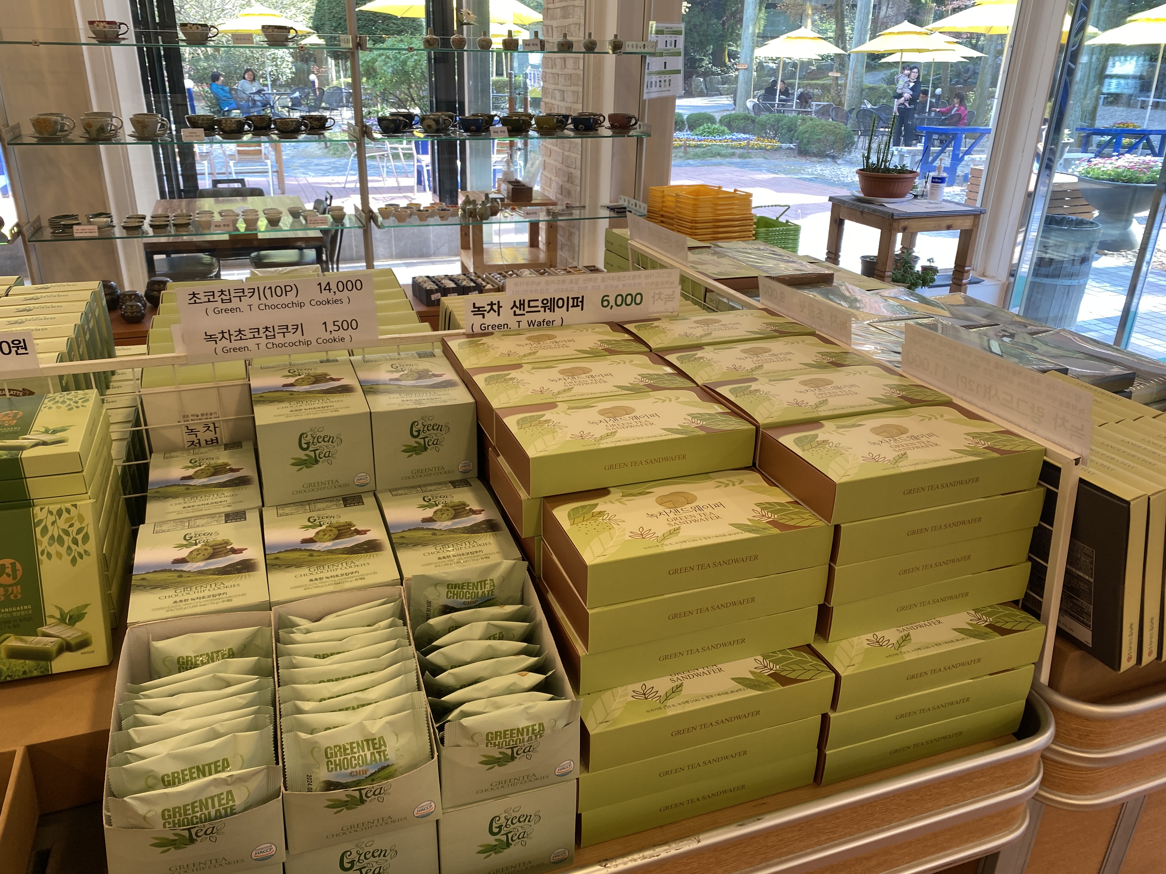 초콜릿이나 과자류 같은 기념품은 쉼터에서 판매하고 있습니다. 녹차랑드샤랑 녹차샌드웨이퍼 사려다가 꾹 참고 차를 사러 갑니다.