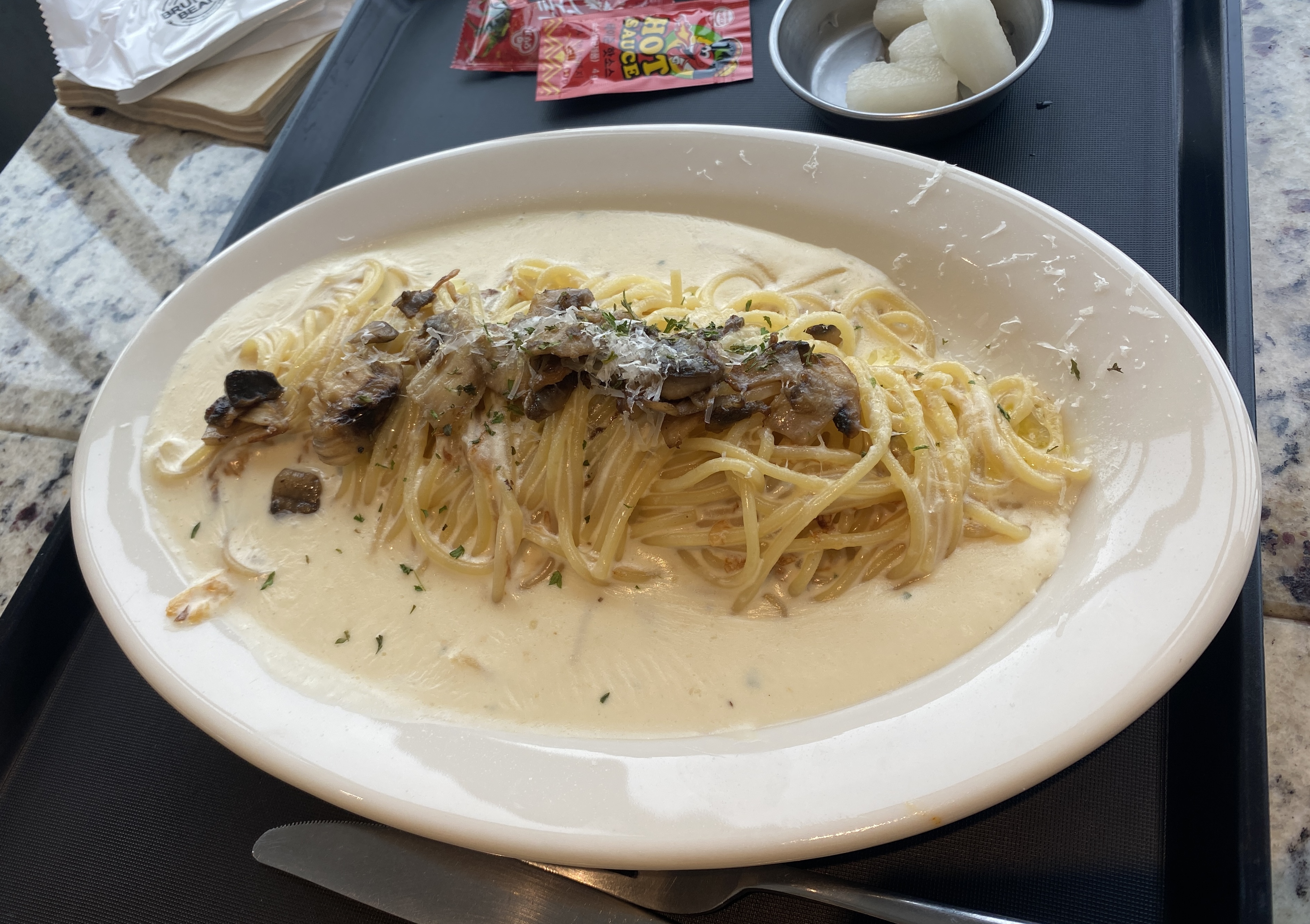그리고 크림뵈르 핵노맛. 어떤 느낌이냐면 천사채맛입니다. 면은 안 익고 소스는 안 배어있어서 진짜 노맛. 급식실에서 나온 파스타보다 맛없어요. 파니니 시킬걸 ㅜㅜㅜㅜ알단테느낌아니에요 ㅜㅜ