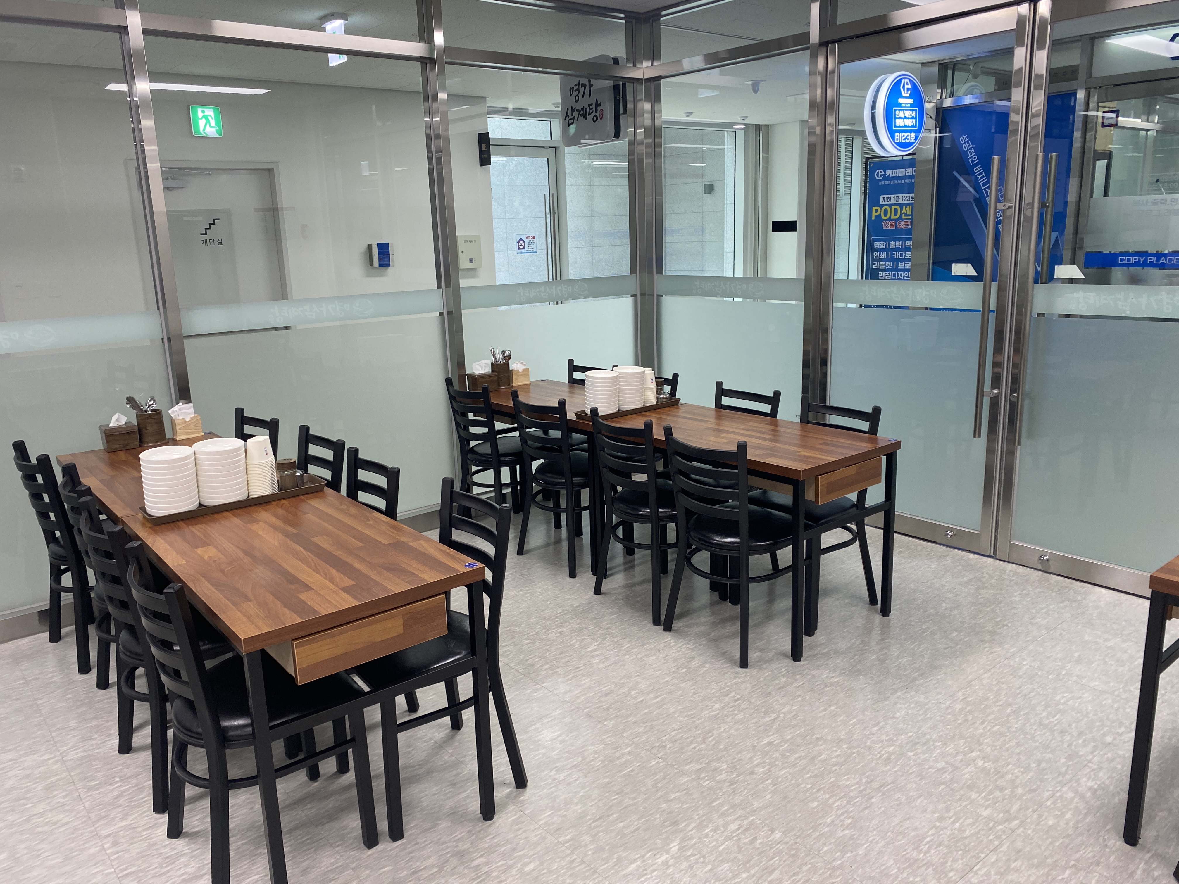 11시 오픈런해서 비어있는 자리를 샤사삭 찍어두었습니다. 확실히 새로 생긴 건물이라 쾌적한데 자리 간격이 넓어서 더 넓어보이는 느낌이였어요.