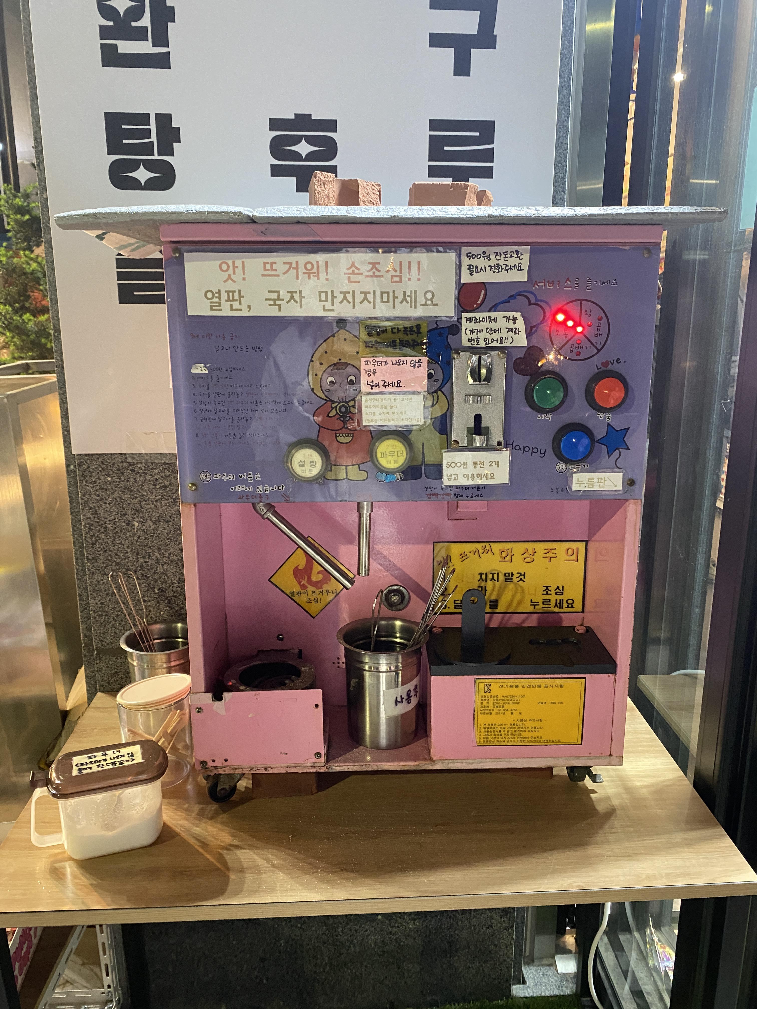 꼬꼬마들을 유혹하는 달고나 기계도 있습니다. 초등학교 저학년 아이들은 특히 위험하니까 꼭 부모님이랑 함께 가기!