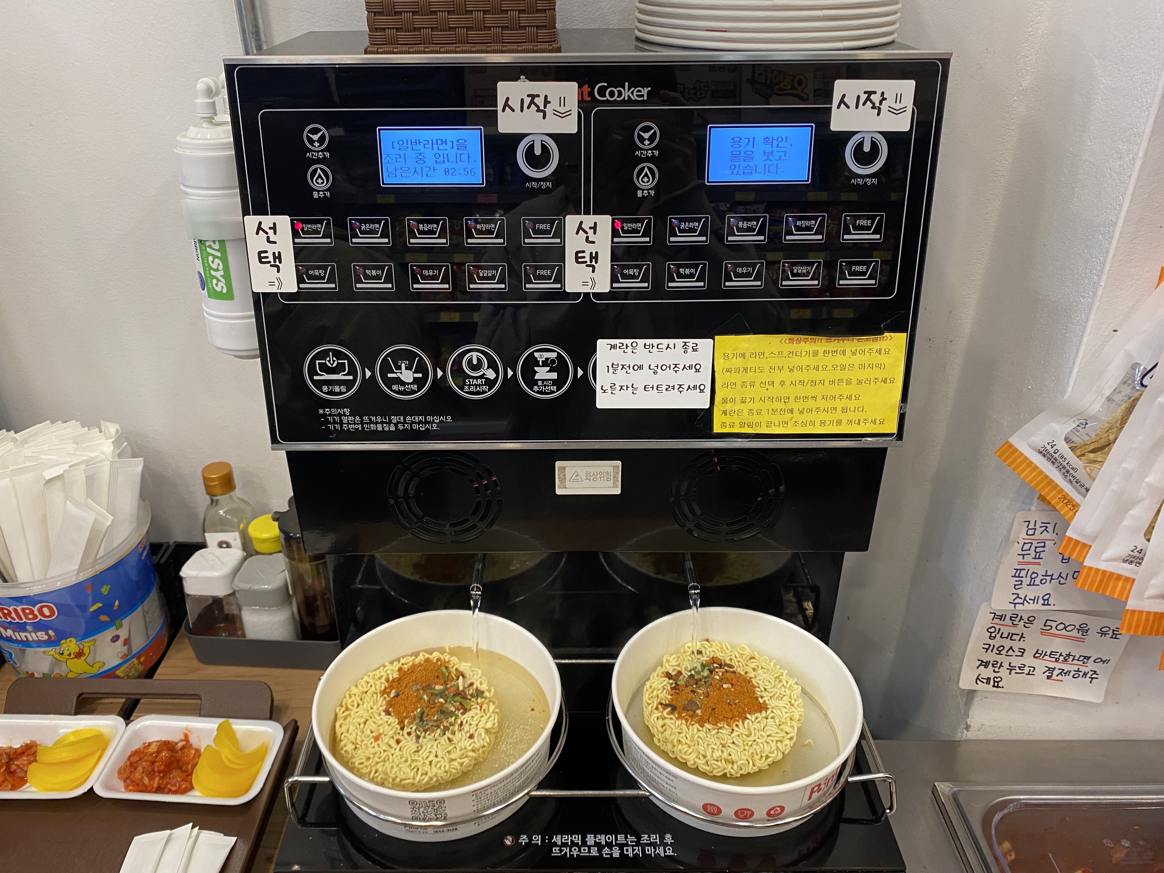 한강라면 3500원 김치 단무지 무료 계란 500원