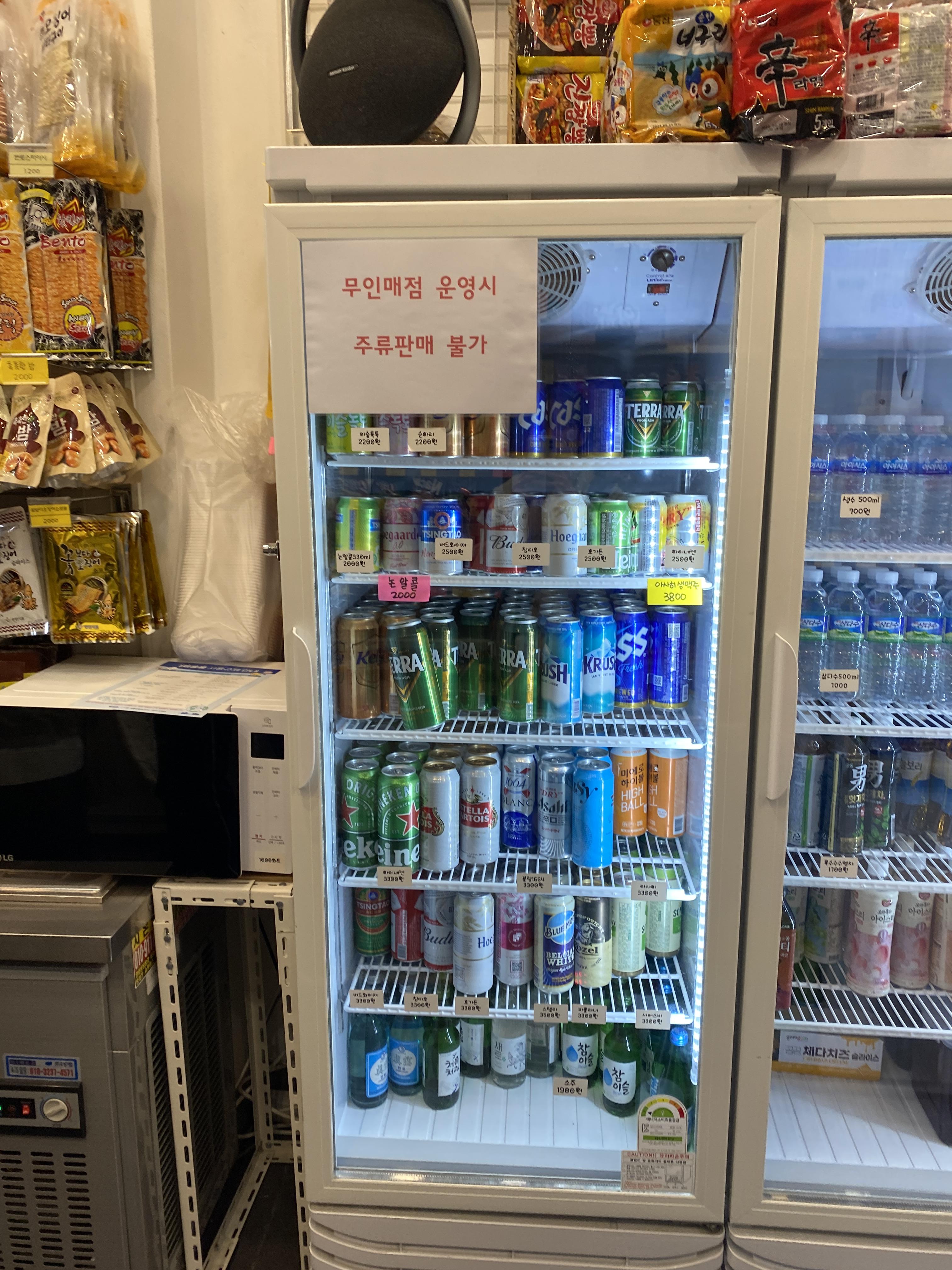이슬톡톡 2200원 논알콜 2000원 아사히생맥 3800원 작은맥주 2500원 수입맥주 3300원 소주 1900원