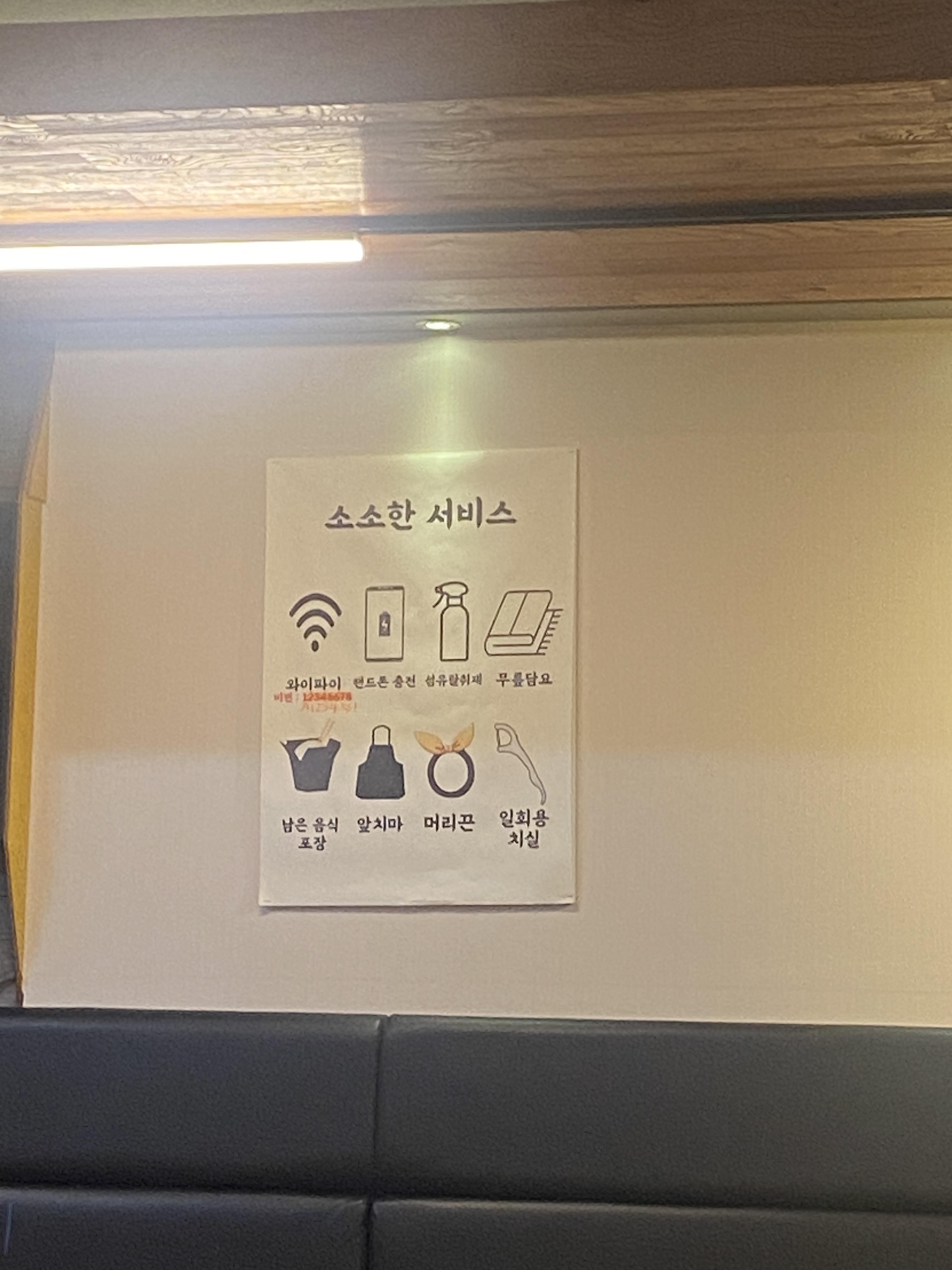핸드폰충전, 섬유탈취제, 무릎담요, 포장, 앞치마, 머리끈, 일회용 치실이 소소한 서비스로 있다고 적혀있습니다. 근데 너무 바빠서 주문하는 것도 힘들어요. 리필이나 주문은 꼭 한 번에 하세요.