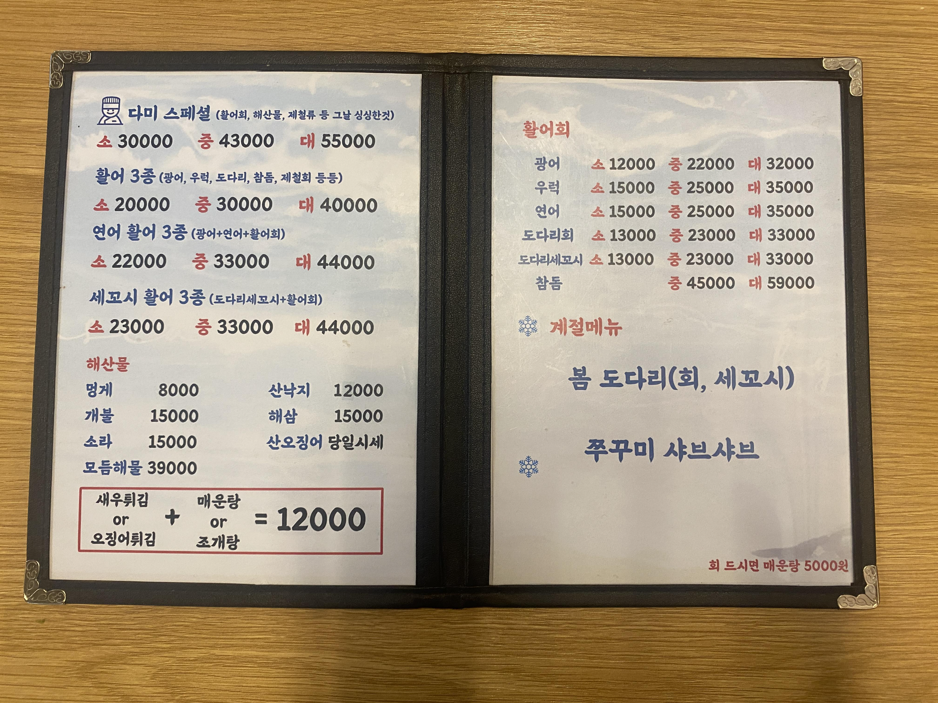 야장이라 그런가 일반 횟집보다 가격이 저렴합니다. 다른 곳 中 가격이 大 가격인 것 같달까요. 극강의 가성비.