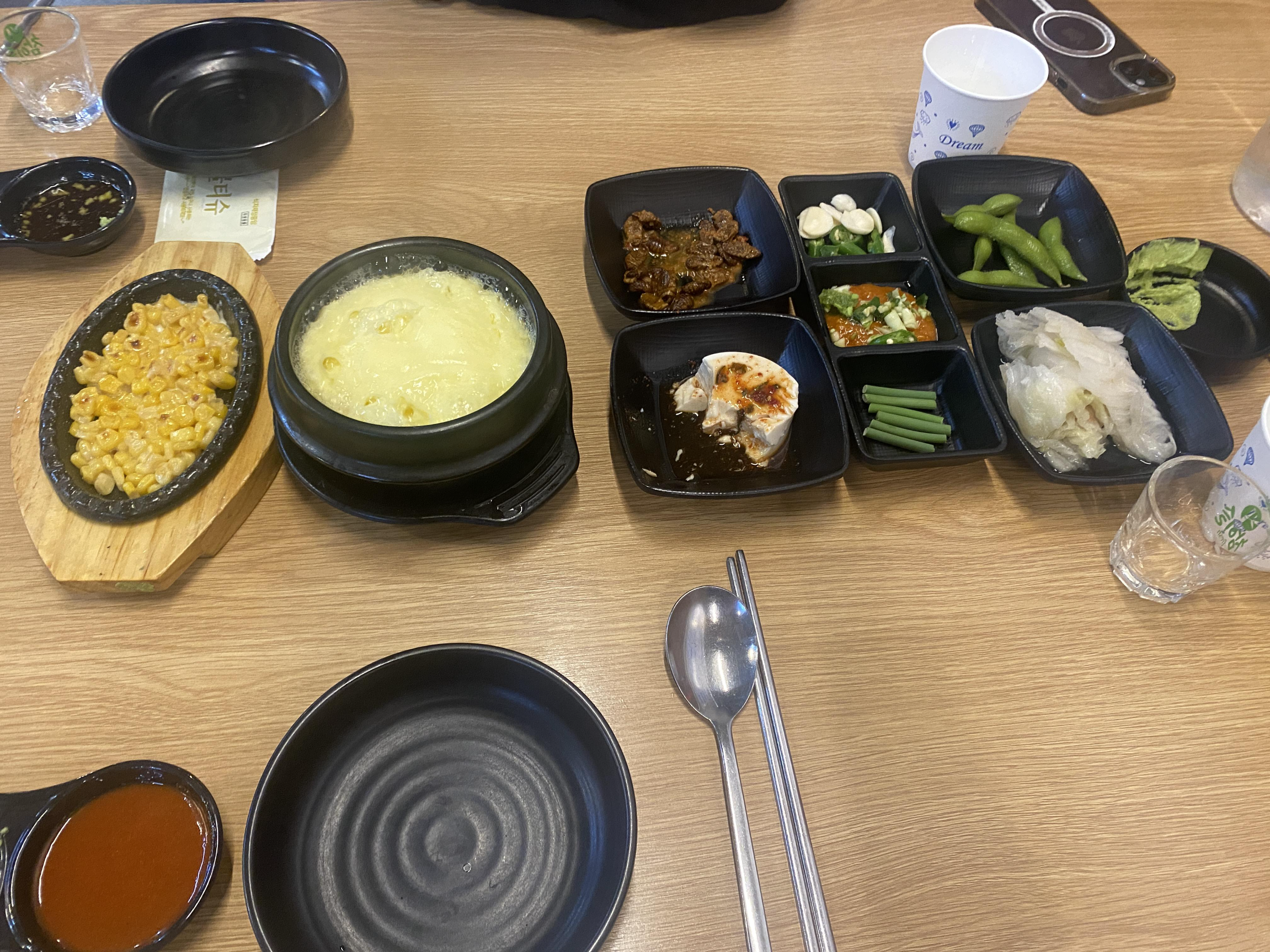 가격이 저렴해서 별기대 안 했는데 콘치즈랑 계란찜도 기본 반찬입니다. 대신 리필은 1,000원 추가.